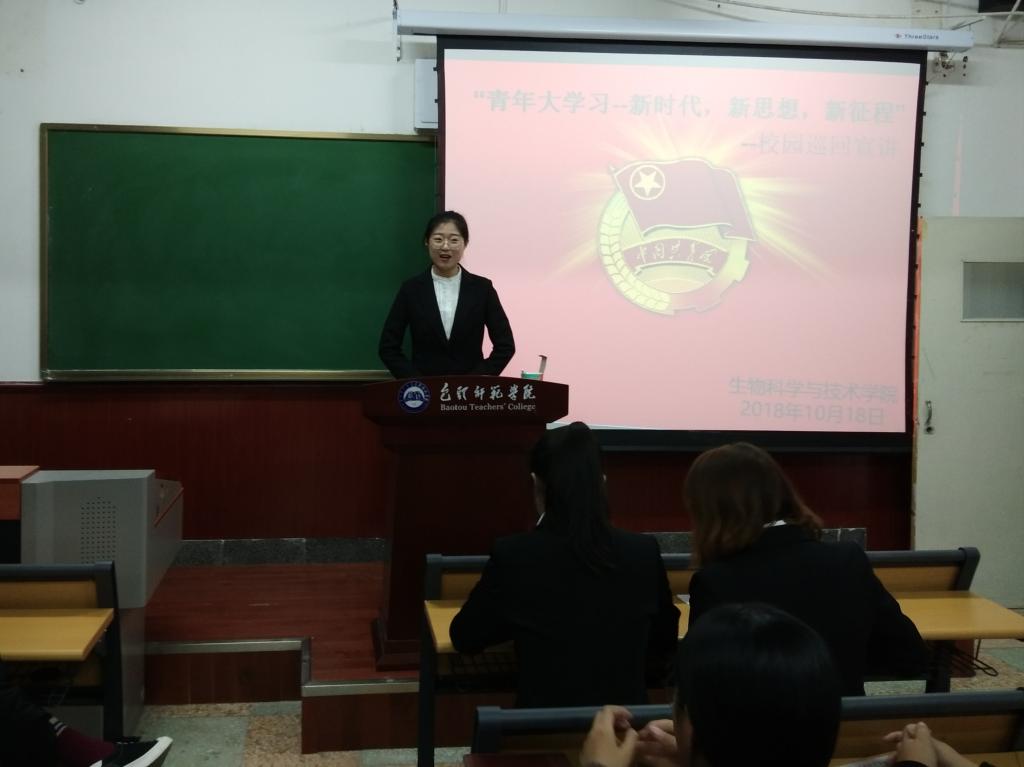 为了让广大团员青年学习领会中国共产主义青年团第十八次全国代表大会精神,生物科学与技术学院团总支邀请校宣讲团成员史楠、马晓微和赵佳佳三位同学,于10月18日晚七点在齐志楼404教室,为部分团员开展了主题团日宣讲活动。