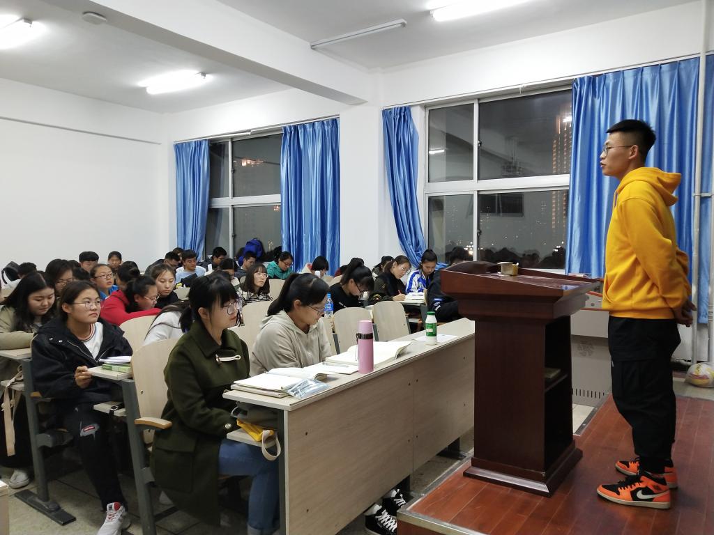 10月25日晚,数学科学学院学生党支部的部分党员深入2018级新生班级讲党课。