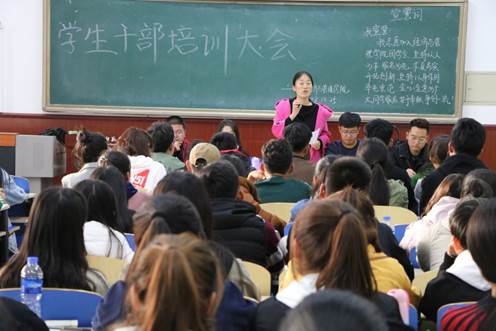 10月25日下午,经济与管理学院在博学楼500开展了2018级学生干部培训活动,由团总支书记、学工办主任袁爱荣主讲,经管学院全体学生干部参加。