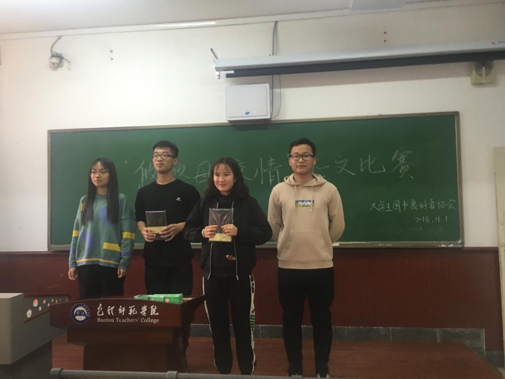 征文比赛分为两个主题:一是“致青春与大学”;二是“悠悠母校情——包师礼赞”。征文活动得到了同学们的积极参与,纷纷踊跃报名,为母校六十周年生日送上真挚的祝福。经过评委的认真评选,17级生物技术班的李妍楠荣获一等奖;17级生物科学国际班宋树祺、18级生物技术班张简获得二等奖;17级生物科学班蔺梦婷、17级生物技术班郭帅和17级生物科学班贾宇获得三等奖,除此之外还有五名同学获得优秀奖。