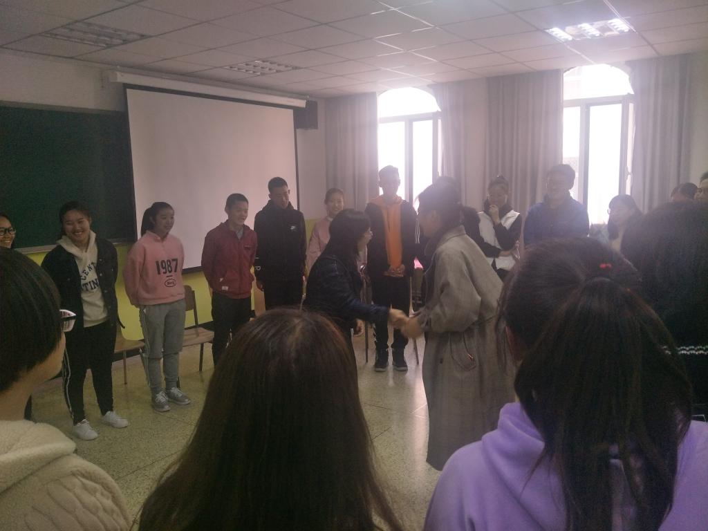 朱丽娜老师首先表达了自己的观点,在日常工作中我们需要提高自己的观察能力,明确自己在班级与宿舍中的定位,并加强同学之间的合作与交流,提升凝聚力。同时要发挥领导作用,积极引导同学们心理健康。其中首要的就是提升同学们的沟通能力和交流能力,使自己能够更好地了解同学们的心理。活动中朱丽娜导师与在场的同学们亲切交谈,以做游戏的方法让同学们身临其境,在了解心理健康辅导知识的同时,也加深了同学之间的关系,寓教于乐,起到了良好的辅导效果。