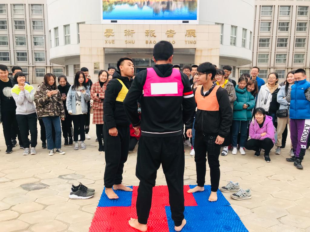 通过“指压板全身动”、“蒙面全身动”、“全员撕名牌”等环节,教师和学生们全情投入、积极沟通,在寒冷的天气中感受到集体的热情,不仅培养了学生干部积极的工作态度和工作责任心,还让大家深刻体会到了团队的力量以及相互合作的重要性,提高了团队合作意识,增强了团队凝聚力。(数学科学学院)