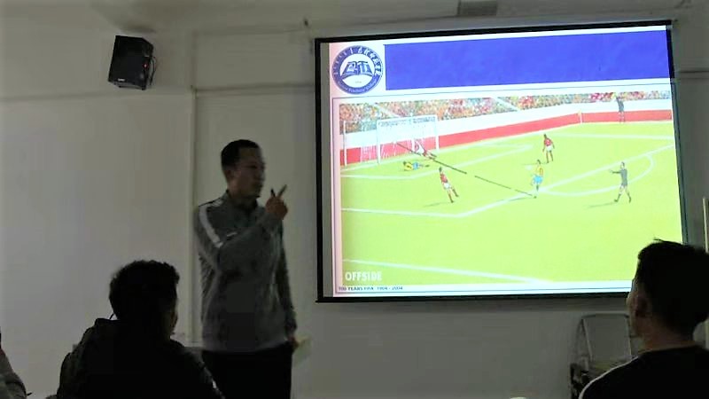 本次“师示范课”由足球教学部的胡成军老师进行示范教学,他的授课内容是“足球裁判法-越位”的讲解。胡成军老师充分利用现代科技手段,活跃课堂气氛,其新颖、精美的课件让人眼前一亮。课程内容以观察图片为导入,随后让学生通过观察进行辨别,在此过程中胡老师特别重视学生的判断力,借助裁判理论强调判断的依据。借助思维导图向学生阐释了进攻方队员、防守方队员和球门线三者之间的内在联系,为接下来的准确结论奠定了基础,大多数学生能够参与到讨论中去,令所有学生陷入沉思。胡老师的教学环节设计流畅自然,恰如其分,充分展示了高效课堂的自然本色。(体育学院)