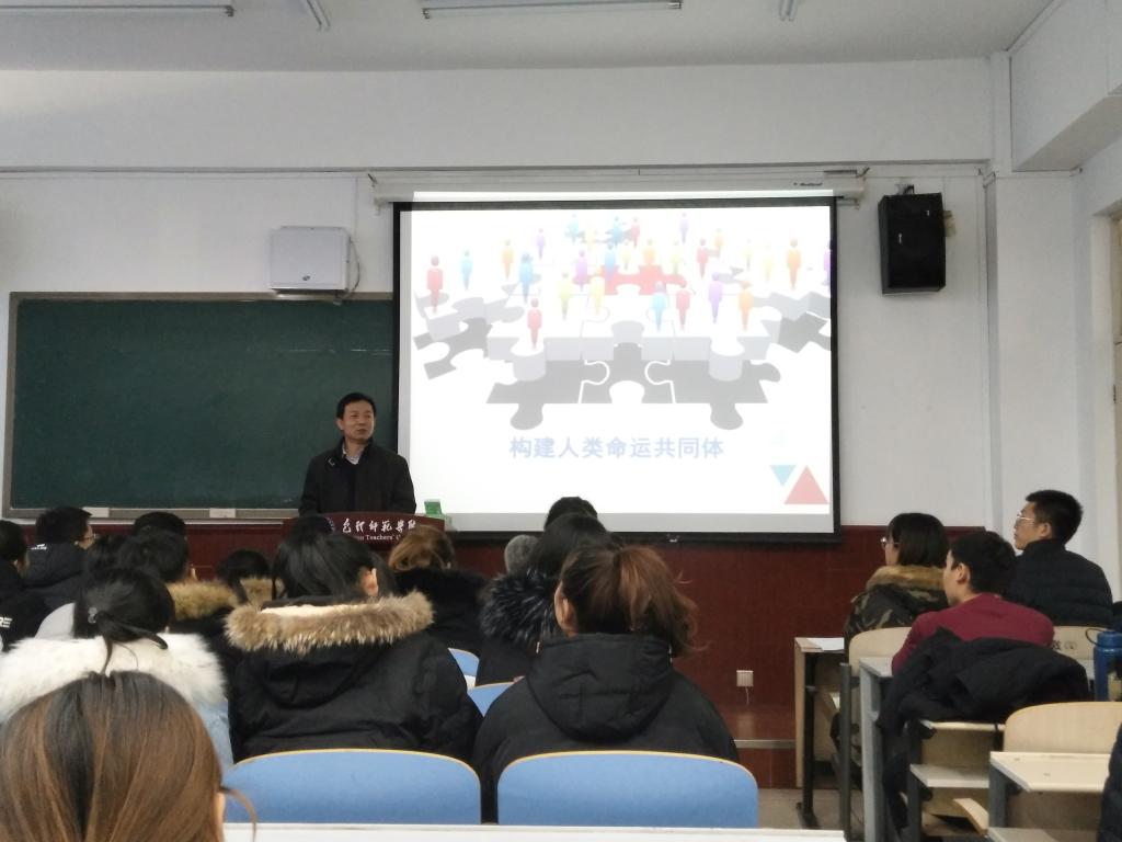 12月10日,王飞全书记、吕煜瑜书记分别参加学生党员宋晓琳同志、马波同志在18级应用物理学班和16级物理学班主题为“构建人类命运共同体的社会主义”的宣讲。两位同志从蝴蝶效应引入,结合当今国际环境,发出当今世界将向何处去的时代之问,之后结合丰富的案例、视频等资源为大家介绍人类命运共同体的定义、提出的背景、理念内涵、发展历程以及“一带一路”倡议布局等,最后两位同志以习近平总书记关于人类命运共同体的重要讲话作为结束语,鼓励同学们更多关注国事家事天下事,携手共建一个更加美好的世界。