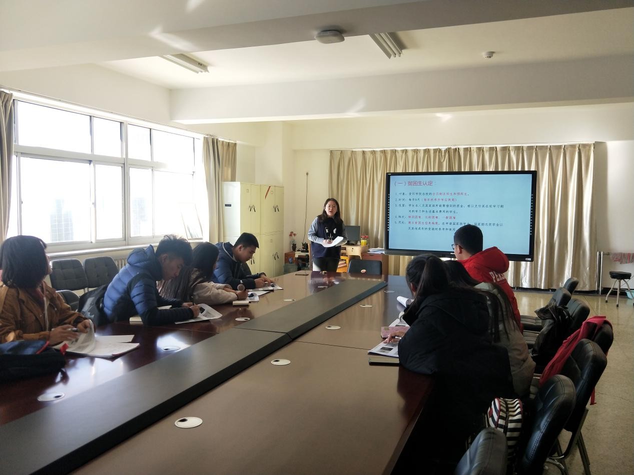 为确保国家资助政策落到实处,使新生充分了解国家资助政策和学校资助宣讲教育工作的意义,资源与环境学院成立了由院资助服务部同学组成的学院资助工作宣讲组,学工办陈燕春老师对宣讲组成员进行了集中培训,为大家详细解读了国家资助政策的意义及学校资助工作的各项规定程序等。
