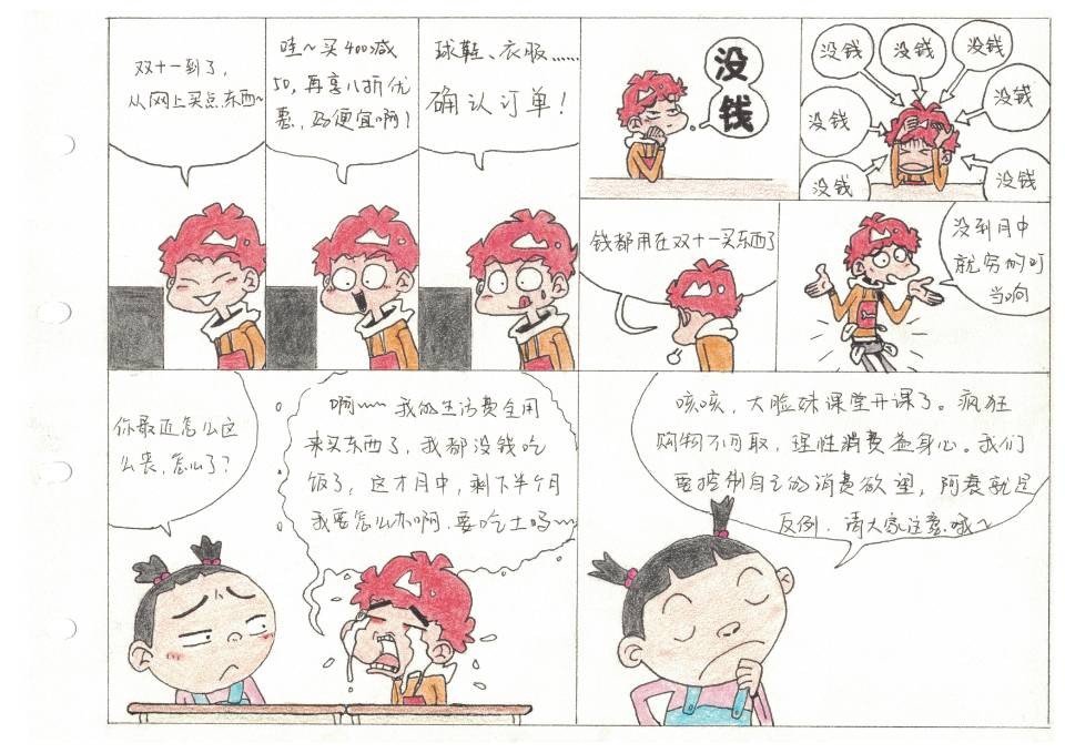 为了培养大学生树立理性消费习惯,资源与环境学院于12月开展了“大学生理性消费”漫画征集活动。