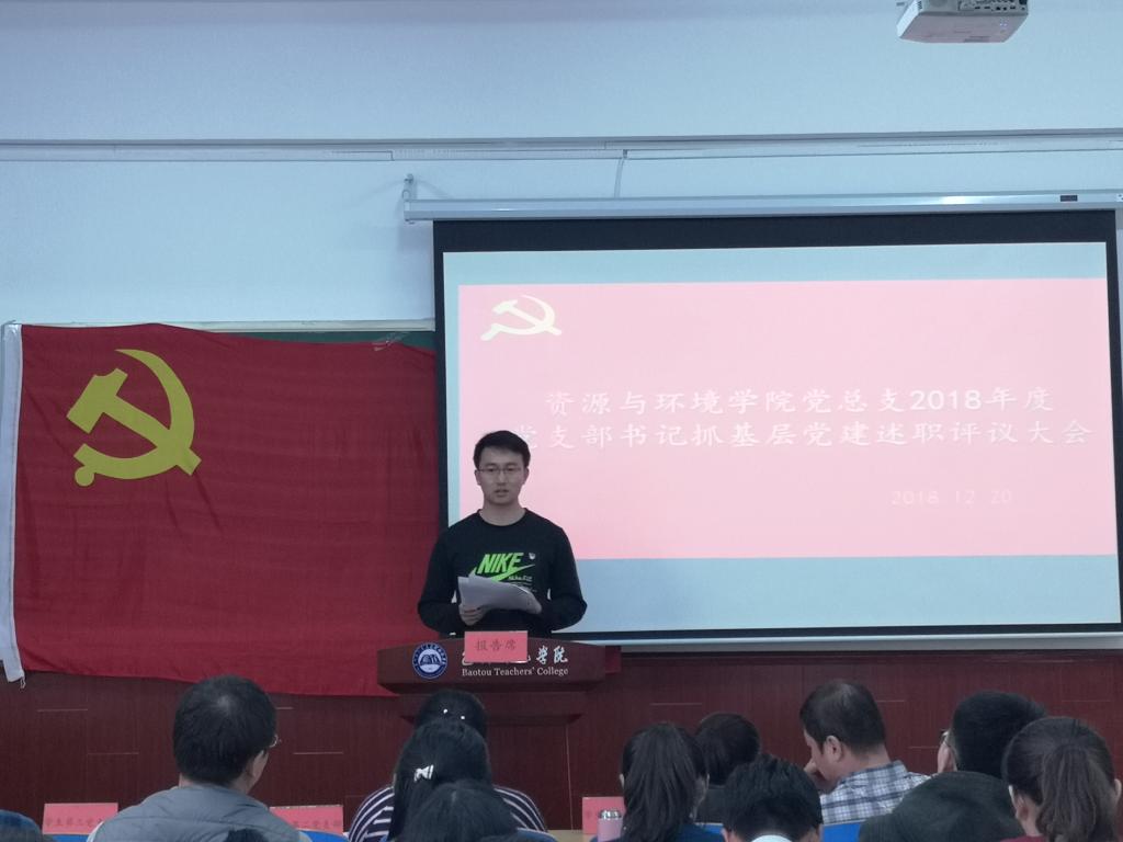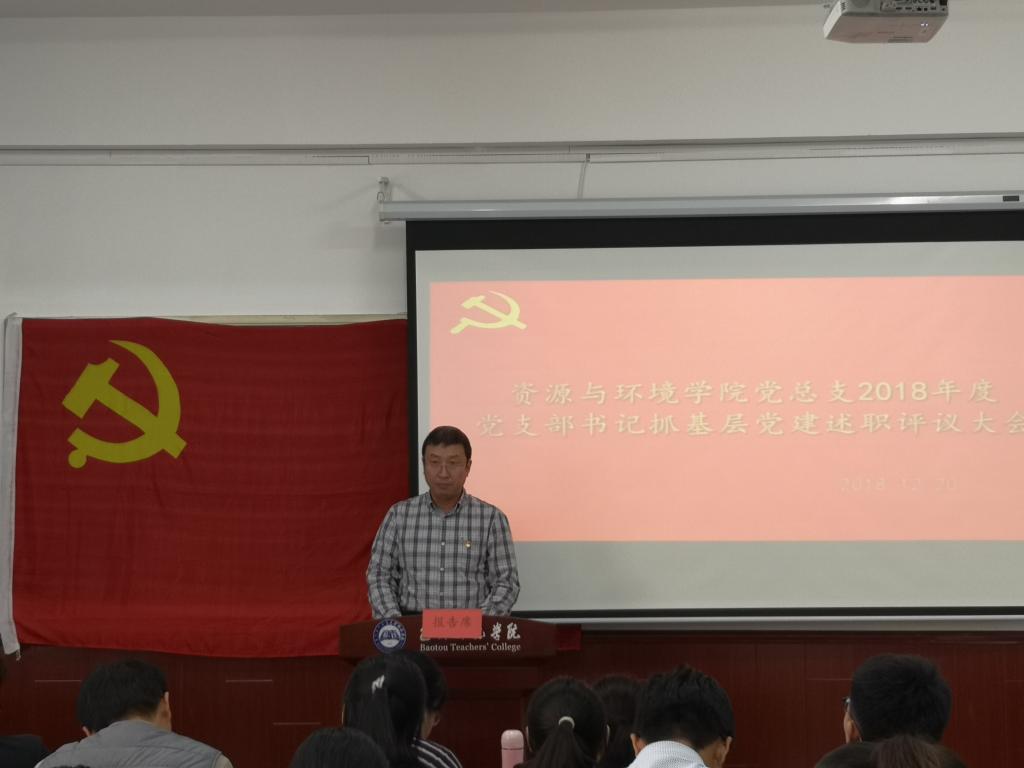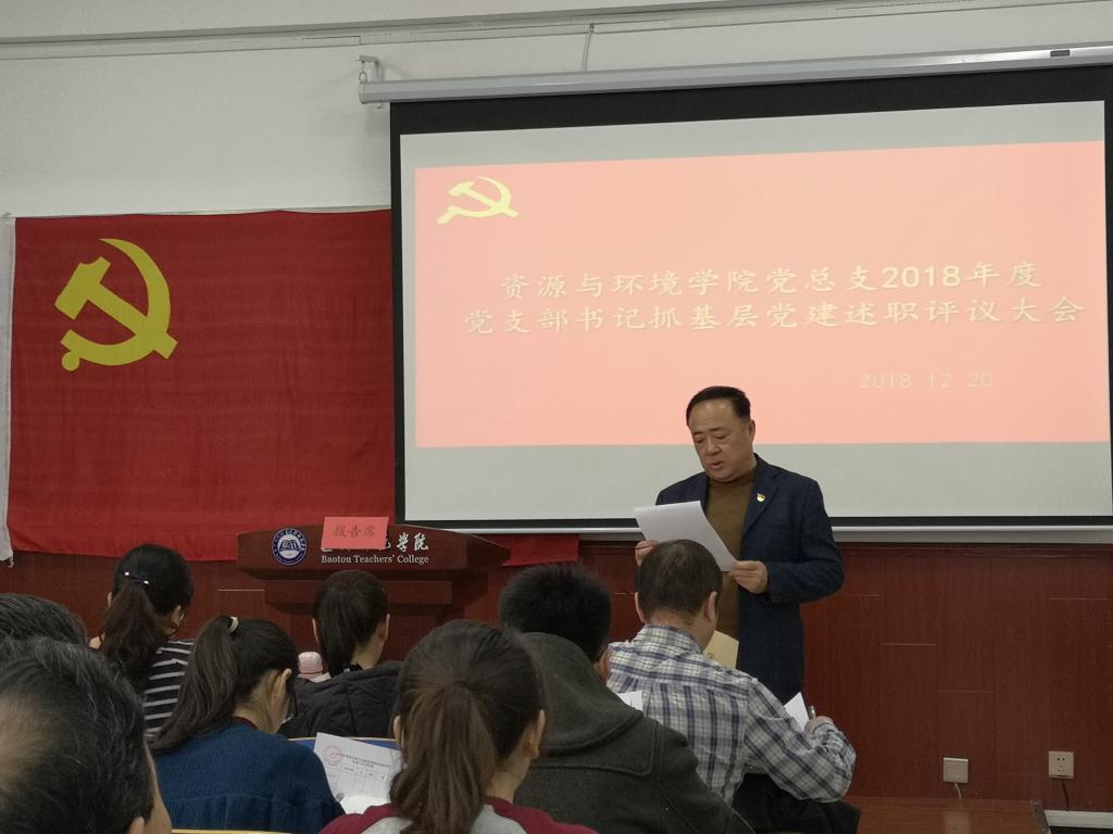 12月20日,资源与环境学院党总支,在博西604以党总支扩大会议的形式组织开展了2018年度党支部书记抓党建述职评议。全院49名党员参加了会议,会议由党总支书记李建军同志主持。