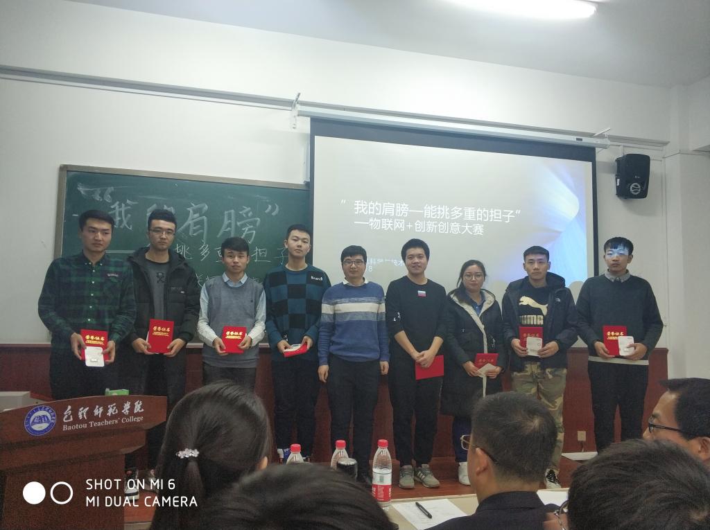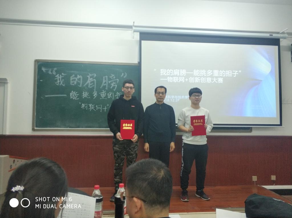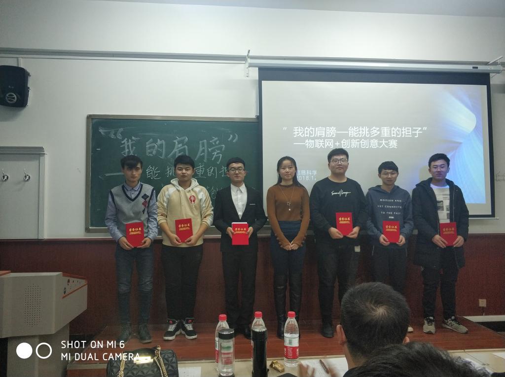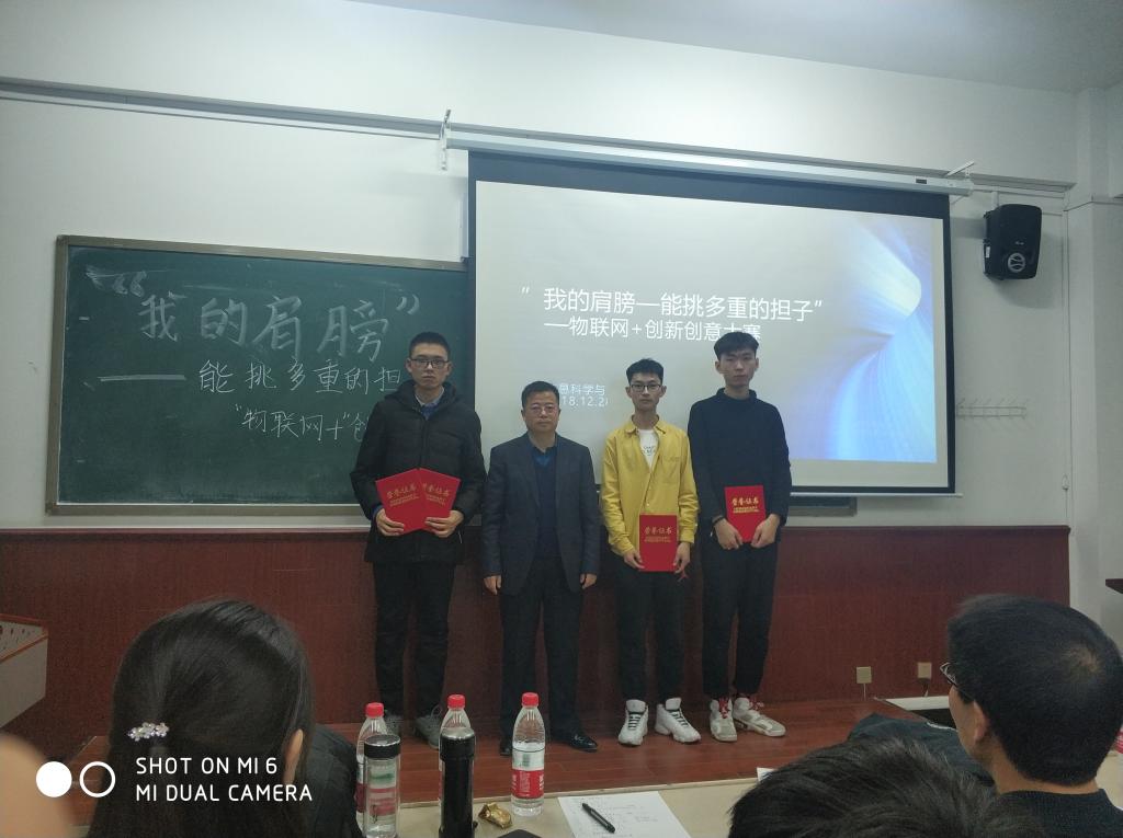 为深入贯彻落实习近平新时代中国特色社会主义思想和党的十九大精神,教育和引导广大青年学生爱国、担当、奋斗,提高学生的自主创新和实践能力,结合学院实际,2018年12月28日下午,信息学院在博学楼西404教室举办了“我的肩膀——能挑多重的担子”之做时代新人担科创使命暨“物联网+”创新创意创业科技作品竞赛。
