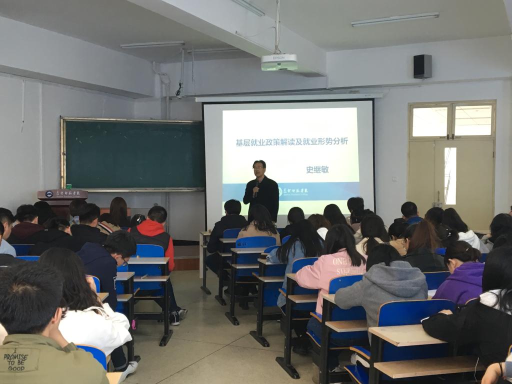首先,史继敏书记围绕今年大学生就业的形势和政策作了动员,讲解了基层就业政策。他要求毕业生要掌握政策,搜集信息,调整心态,明确定位。魏兵院长就实习、学业问题作了部署和要求,并为同学们提供了择业信息和指导,鼓励同学们积极就业。校军事理论办公室主任李胜强老师就应届毕业生参军入伍政策做了专业解读,并做了总动员。学工办辅导员丁瑞丽老师为毕业生介绍了就业协议书的填写及报到证办理等事宜,明确了各项工作的时间节点,要求同学们按照时间节点提交材料。