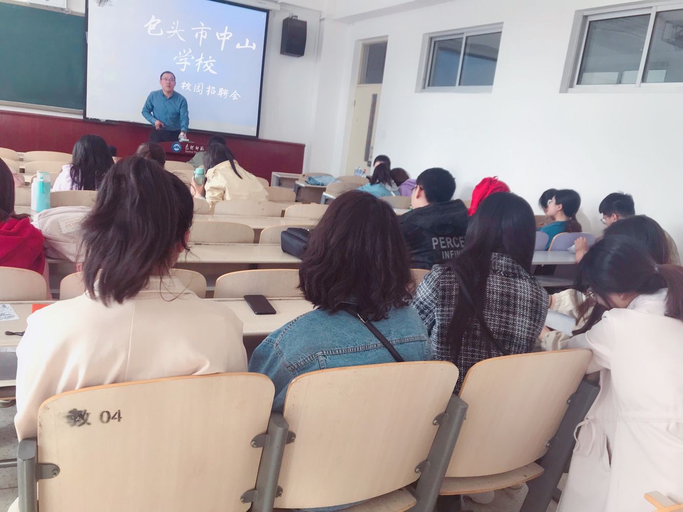 会上,包头市中山学校副校长向应聘学生介绍了学校概况和招聘需求,并就就业形势、职业发展、课程情况等内容与应聘学生进行了互动。