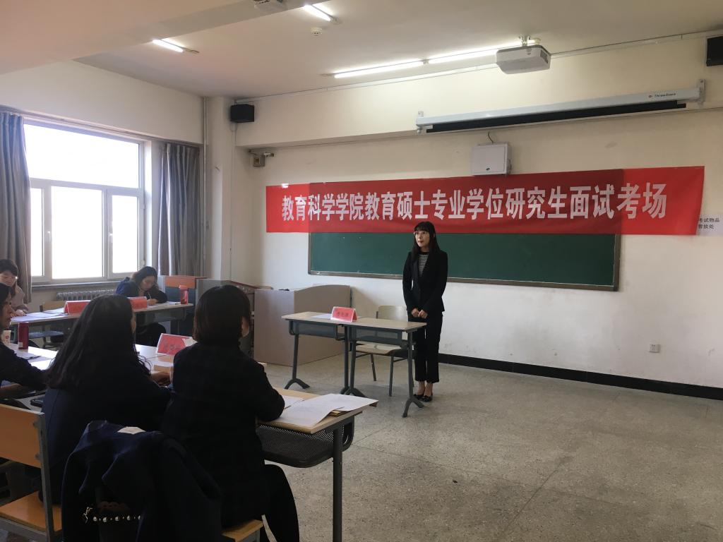 复试分为笔试和面试两部分,笔试由研究生处统一组织,面试由教育科学学院自行组织。3月31日上午面试在新逸夫楼401教室进行,分为两组进行:第一组为学前教育专业三位考生,第二组为小学教育专业十五位考生。面试评委及工作人员严格执行面试工作程序,本着全面考察,优中选优的原则认真履行选拔职责。本次面试,既考察了考生的知识储备、科研情况、创新能力、外语能力等,又对考生的思想政治面貌、心理健康情况、行为礼仪等方面进行了考察,为保障研究生人才培养质量奠定了基础。