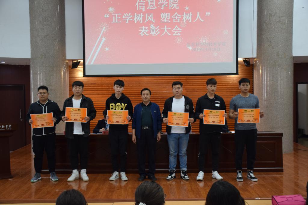 为了深入贯彻落实学校学生工作委员会《关于大学生思想政治领航计划的实施意见》、《“打造公寓文化,创造优良学风”正学树风计划实施方案》,不断推进学风、院风、班风建设,4月18日下午,信息学院在学术报告厅召开了“正学树风 塑舍树人” 表彰大会。学生工作部副部长郭志峰、信息学院党总支书记周汉忠、院长马占飞出席了会议,全体班主任、辅导员、大一大二全体学生、大三部分学生代表参加了会议。会议由副书记副院长郭宏升主持。