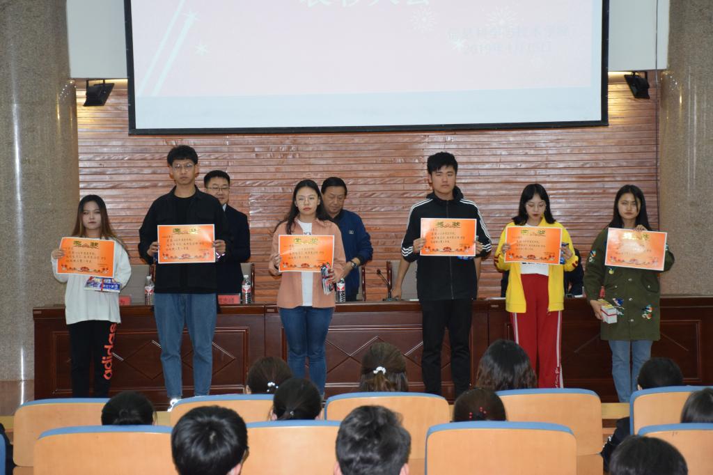 会上,马占飞院长和周汉忠书记分别宣读了《信息科学与技术学院关于表彰星级文明宿舍的决定》、《信息科学与技术学院“我抖担当志,我秀爱国请”抖音短视频大赛获奖名单》及《信息科学与技术学院关于表彰优良学风班集体的决定》,并进行了颁奖仪式。此次表彰大会共表彰了7个优良学风班集体和7位优秀班主任,30个“星级文明宿舍”,6个抖音短视频大赛获奖宿舍。颁奖仪式后,尹淑娟老师作为当选的优秀班主任,“公平公正公开”、“尊重学生,以诚相待”、“学习是永恒的主题”、“选好班干部”、“家校携手,共同管理”五个方面作了经验分享,并介绍了班级取得的成绩。16国际班的侯慧贤同学代表女生“星级文明宿舍”发言,她介绍了宿舍成员在思想建设、团体活动、团体及个人获奖情况等各方面取得的优异成绩,并为同学们提供了如何以“一家之心”来建设和谐、舒适氛围的可鉴经验。18国际班的张皓同学代表男生“星级文明宿舍”发言,他们把“第一个起,最后一个走”作为值日的标准,并告诉同学们学习、生活中关注细节的重要性。