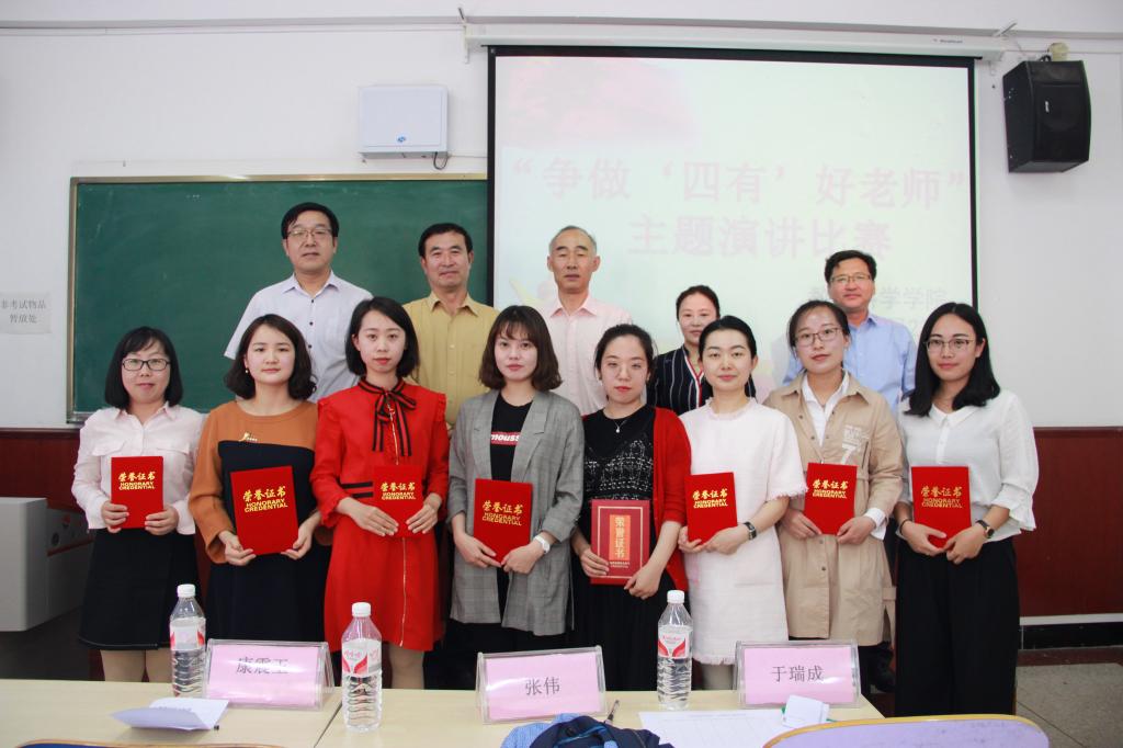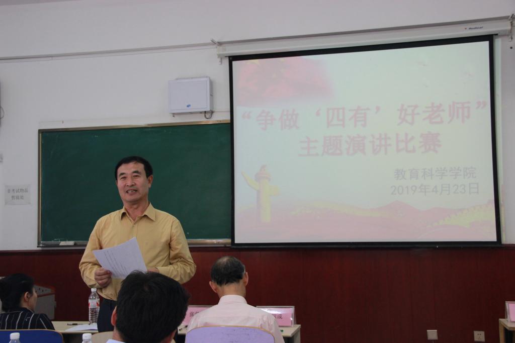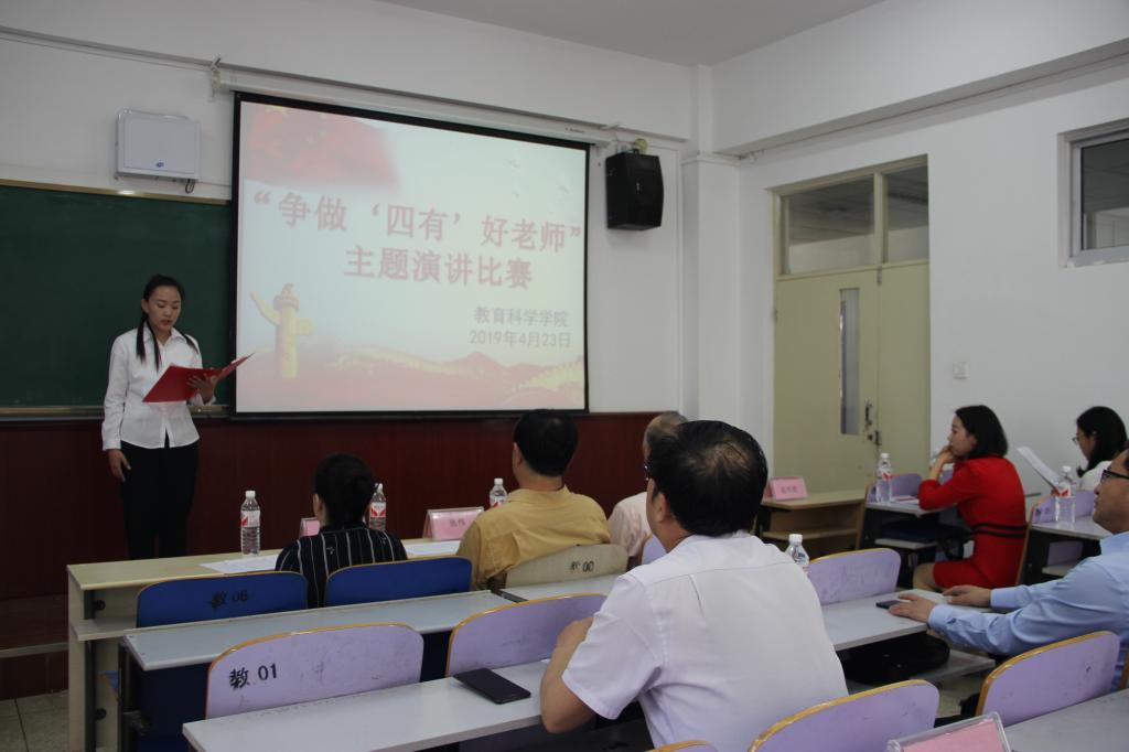 为深入贯彻《中共中央国务院关于全面深化新时代教师队伍建设改革的意见》,落实教育部《新时代高校教师职业行为十项准则》要求,全面推进师德师风建设,引导广大教师以德立身、以德立学、以德施教、以德育德,完成好立德树人的使命任务,落实“师德教育月”活动。4月23日下午,教育科学学院在博西102教师举办了青年教师“争做‘四有’好老师”主题演讲比赛。
