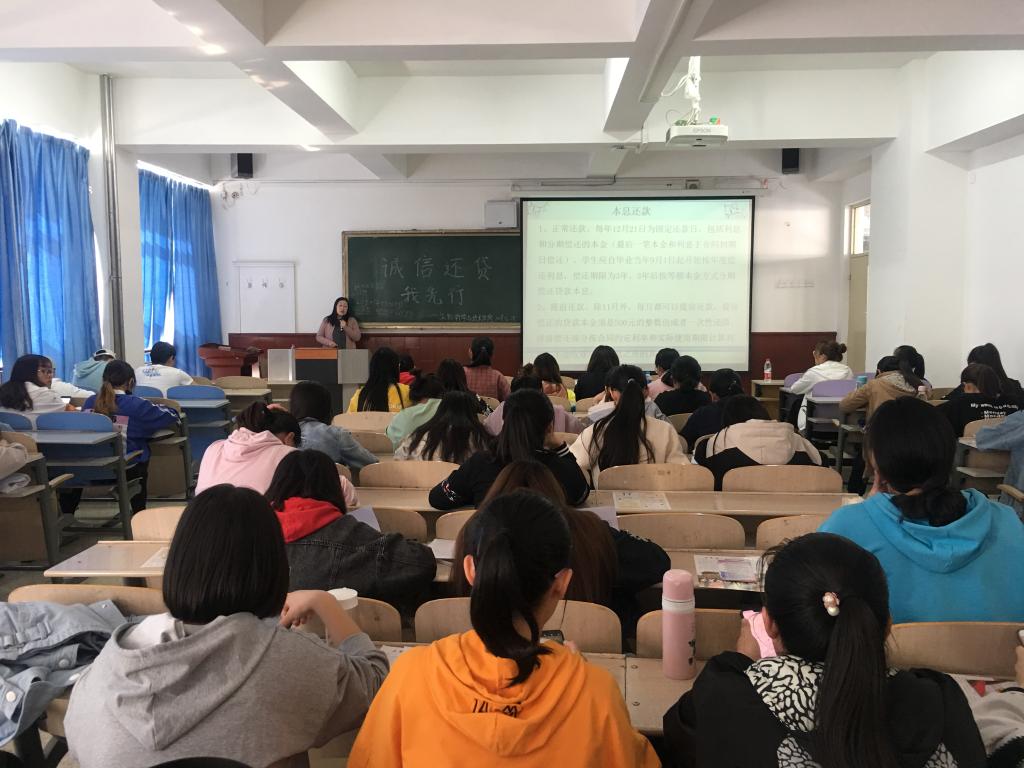 讲座上,赵老师详细讲解了助学贷款的相关政策以及续贷等相关事宜,接着又从个人征信系统、银行相关贷款业务办理、国家助学贷款信用要求及违约责任等方面阐述信用贷款的含义及其重要性,运用多个生动且富有教育意义的实例,引导学生重视并有效建立自己的良好信用记录,提高自己的理财理念。最后,张老师提醒贷款毕业生要恪守诚信,珍惜自己的信用记录,特别要避免贷款拖欠、逾期还款等方面的问题。