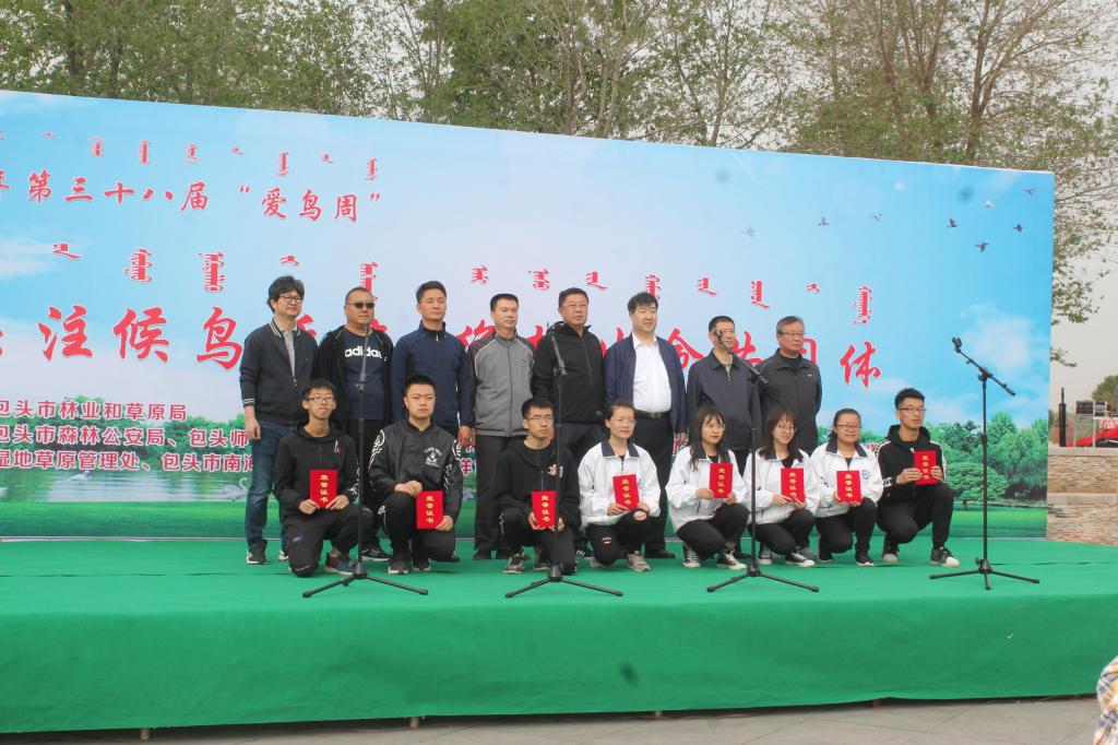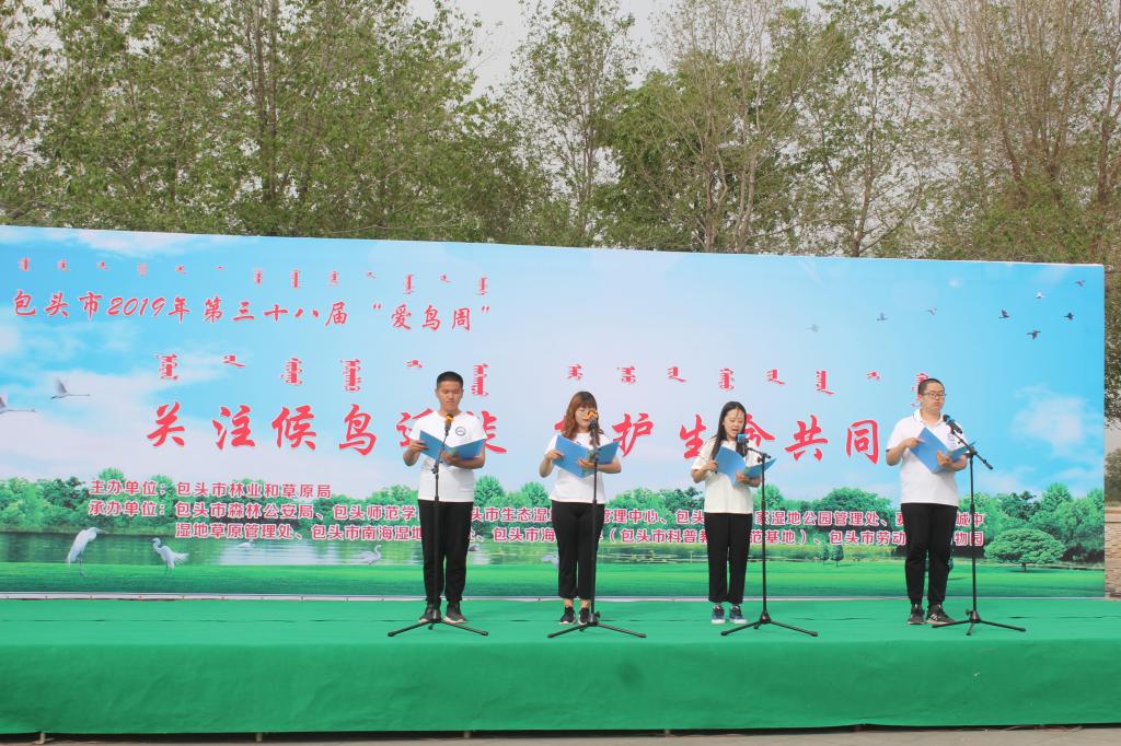为提高公众保护环境的意识,传播生态文明理念,落实习近平总书记关于内蒙古生态建设的重要指示精神,5月18日,生物科学与技术学院与包头市林业和草原局、包头市森林公安局、包头黄河国家湿地公园管理处等9家单位联合,在赛罕塔拉公园城中草原东门广场举办包头市第38届“爱鸟周”宣传活动。