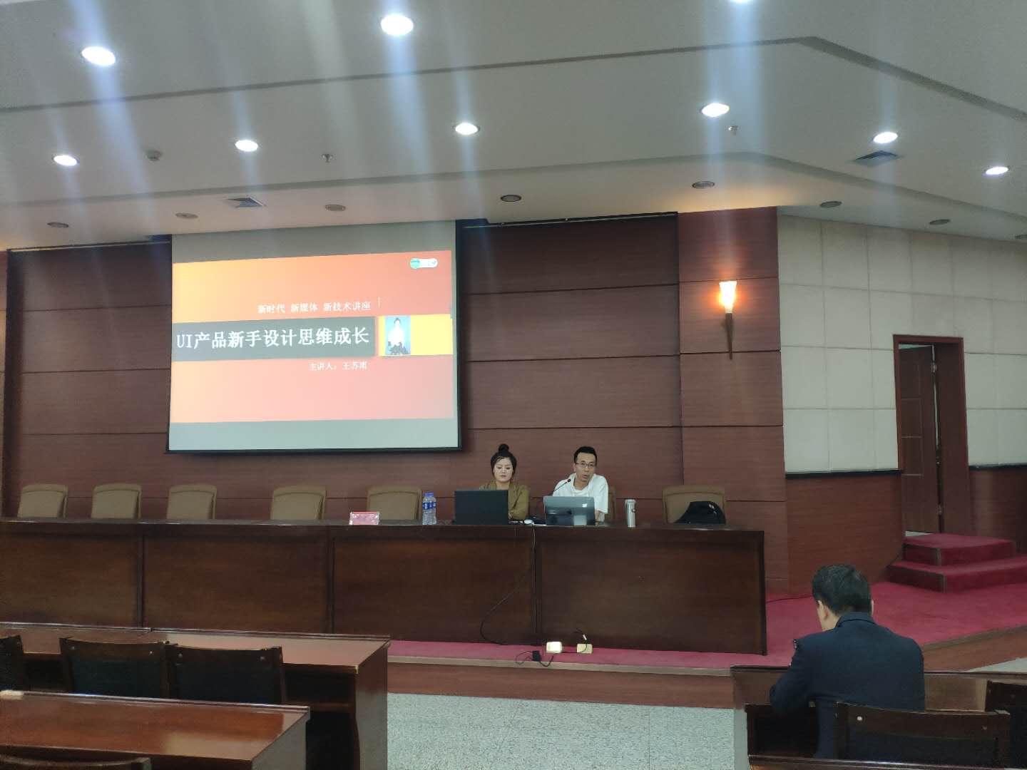 5月23日上午,由美术学院与校科技处共同主办的“新时代·新媒体·新技术”系列讲座在学校图书馆会议室举办。本次讲座以《UI产品新手设计思维成长》为题,邀请业界资深设计创意总监王苏雨、资深广告人国强作为主讲人。美术学院全体教师及设计专业学生参加了本次讲座。