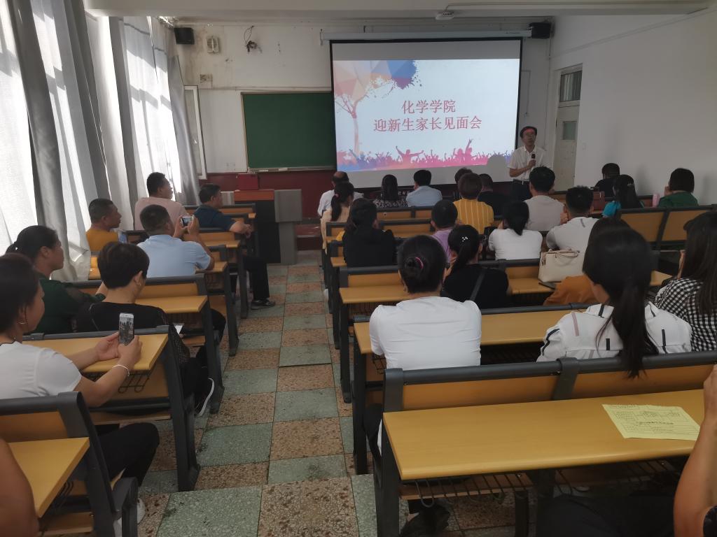 8月29日下午,化学学院在齐志楼301召开了2019级迎新生家长见面会。化学学院党总支书记史继敏,院长魏兵,党总支副书记、副院长冯丽以及新生班主任出席了此次家长见面会。本次家长见面会由冯丽老师主持。