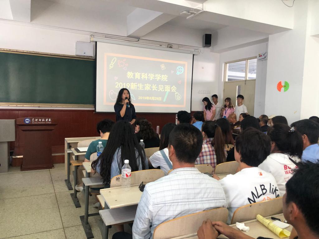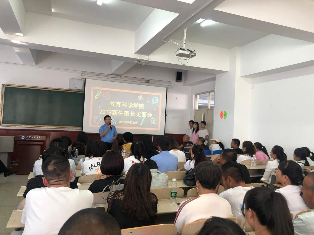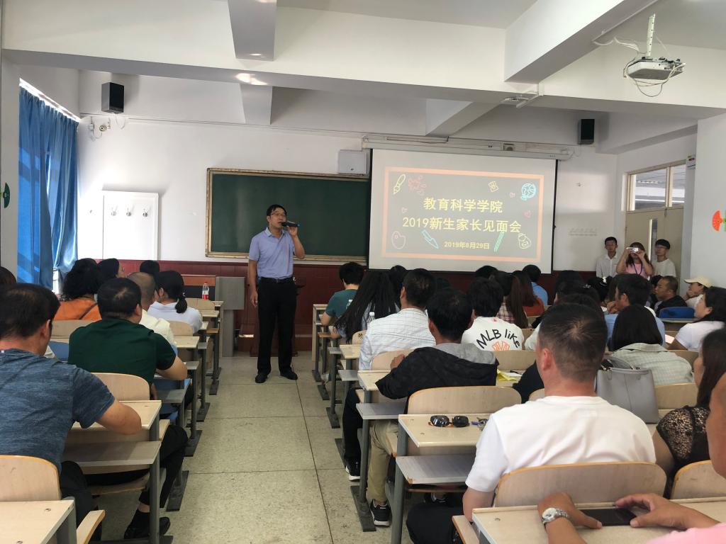 为了让广大新生家长深入了解学校、学院、专业及教学、学生管理等方面的情况,与学院协同配合做好新生的教育引导工作,使学生顺利度过四年的学习生活,实现健康成长成才的目标,8月29日下午,教育科学学院在博学楼400召开了2019级新生家长见面会。教育科学学院领导班子成员、各系主任、辅导员、新生班主任和助理班主任及新生家长共100余人参加了本次见面会。