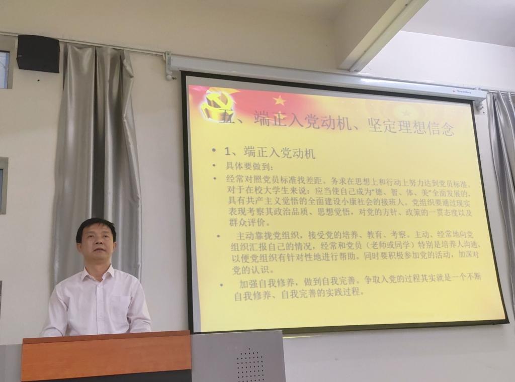 王飞全书记围绕共产党人的初心与使命,从中国共产党的革命史、奋斗史以及带领中国人民从站起来到富起来、强起来的伟大征程,阐释了中国共产党的性质,引导2019级新同学端正入党动机,真正从思想上、行动上向党组织靠拢,把加入中国共产党作为自己的人生追求。同时,王书记为同学们全面介绍了入党的程序,要求同学们在学习上和生活上发挥表率作用,加强理论学习,不断坚定理想信念,争取早日成为一名共产党员。期间,王书记还为同学们介绍了中美贸易摩擦产生的根源,这既是一次新生党团知识教育,也是一次形势政策教育。