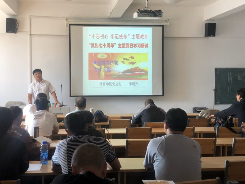 为全面推进“不忘初心,牢记使命”主题教育深入开展,贯彻落实《关于在新中国成立70周年之际开展“献礼七十周年”主题党日活动的通知》精神,体育学院党总支于9月26日下午组织全体教职工在体育馆四楼多媒体教室召开了“中国共产党为什么能”主题党日活动。