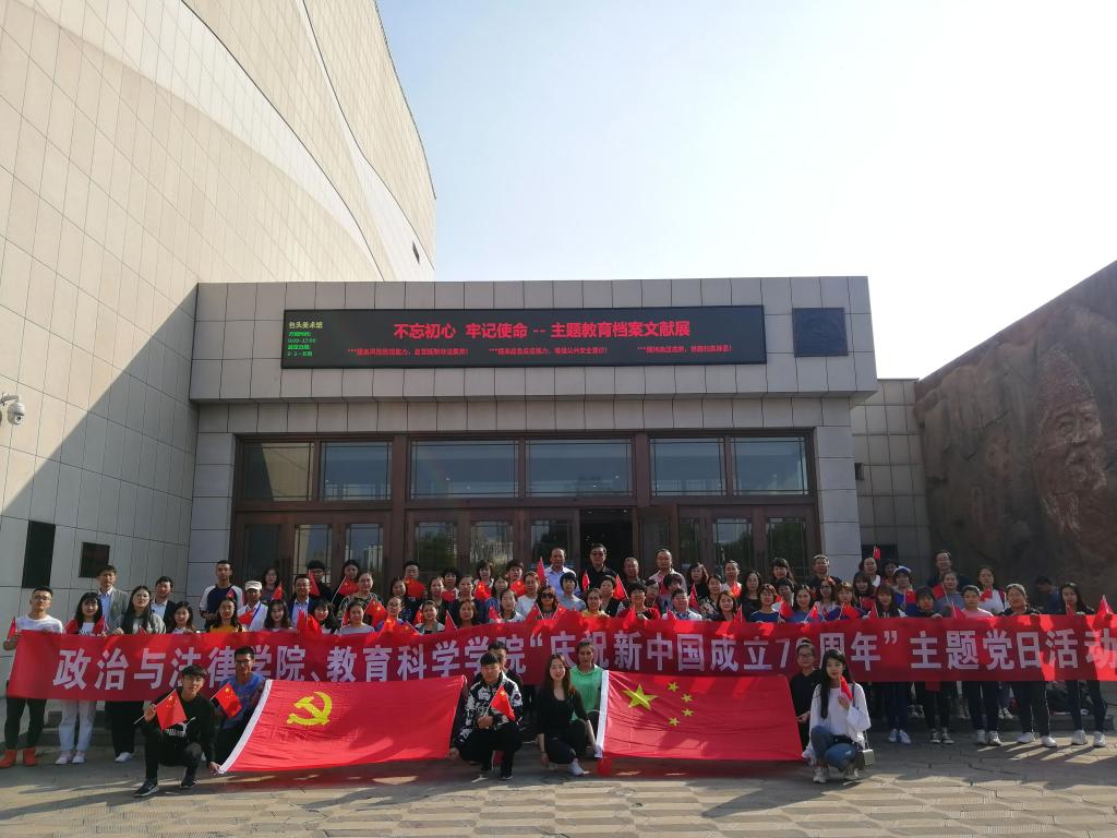 为庆祝中华人民共和国成立70周年,深入学习贯彻习近平总书记关于“不忘初心、牢记使命”主题教育系列重要讲话、重要指示批示精神,推进“不忘初心、牢记使命”主题教育工作,9月29日下午,教育科学学院、政治与法律学院、化学学院党总支联合开展了“献礼七十年”主题党日活动,组织120余名师生党员赴包头美术馆参观“不忘初心 牢记使命”主题教育档案文献展,通过一场思想政治的洗礼,引导广大师生党员发扬革命精神,传承红色基因,以不忘初心、牢记使命的政治责任迈向新征程。