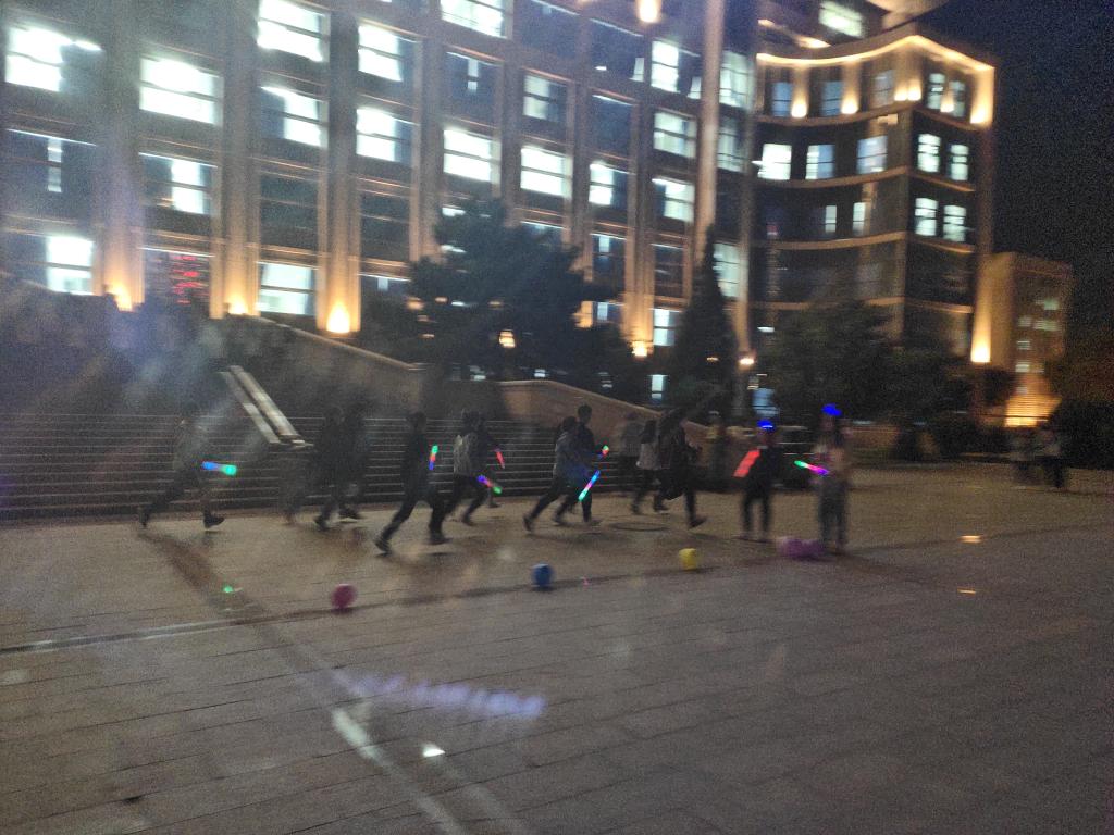随着动听的音乐响起,荧光夜跑正式开始。参赛人员共分为11个小队,每人佩戴荧光手环按指定路线完成跑步。荧光点缀着夜晚的校园,博楼前的游戏地点处也充满欢声笑语。其中一个参赛队伍“党员小队”由学生党员组成,他们挥动手中的荧光棒并带领着同学们向前奔跑。在场的工作人员热情高涨,一边为各小队计时,一边为他们加油喝彩。经管学院的“继承者们”校队、“红太阳”小队、“轻羽飞扬”小队和外国语学院的“夜空中最亮的星”小队、“二元一次方程组”小队、“勇往直前”小获得此次活动的前三名。
