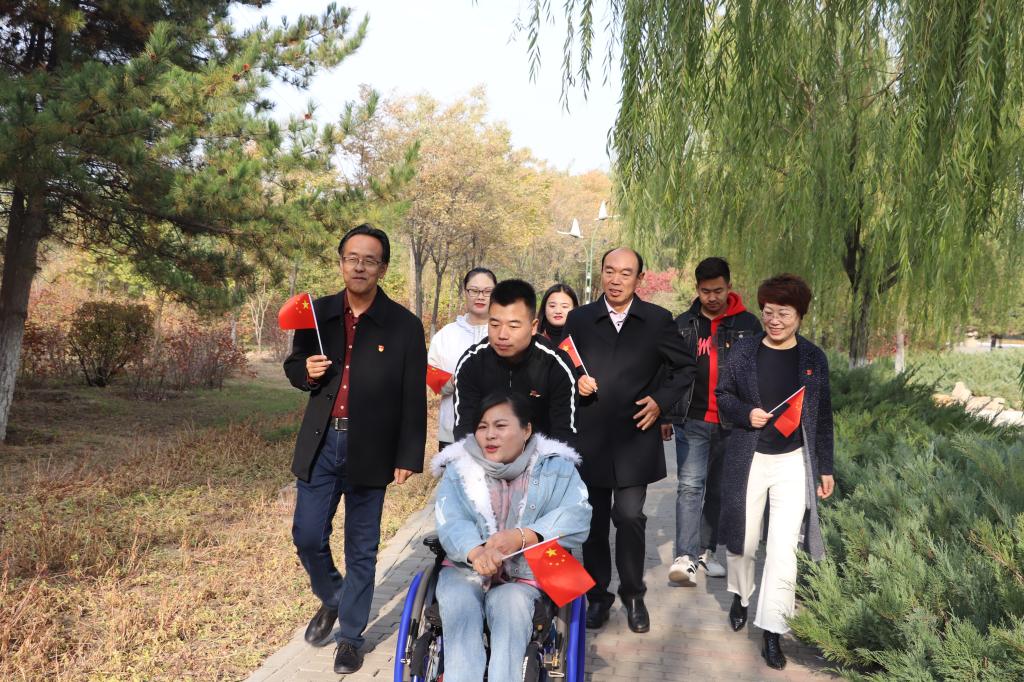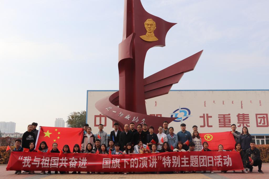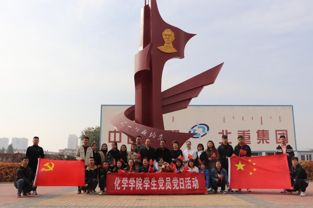 为庆祝新中国成立七十周年,扎实推进“不忘初心,牢记使命”主题教育,进一步坚定“四个自信”,增强“四个意识”,做到“两个维护”,培养学生爱党、爱国和爱社会主义情怀,弘扬爱国主义精神,10月19日上午,化学学院学生党支部、团总支、学生会在包头市北方兵器城举办了“我与祖国共奋进”主题党日团日活动。此次活动特别邀请了中国第一位残疾人女子举重世界冠军和残奥会举重冠军、我校2000届优秀校友边建欣。化学学院党总支书记史继敏、院长魏兵、党总支副书记冯丽、学生党支部副书记丁瑞丽、辅导员张旭及化学学院学生党支部全体党员与优秀团员代表参加了此次活动。