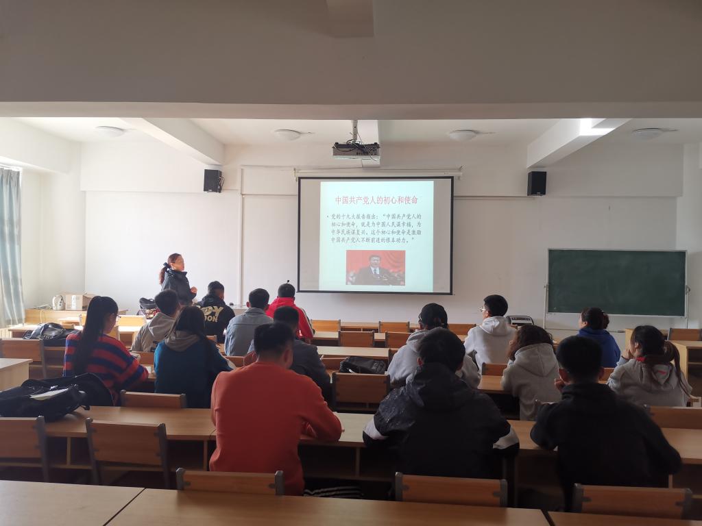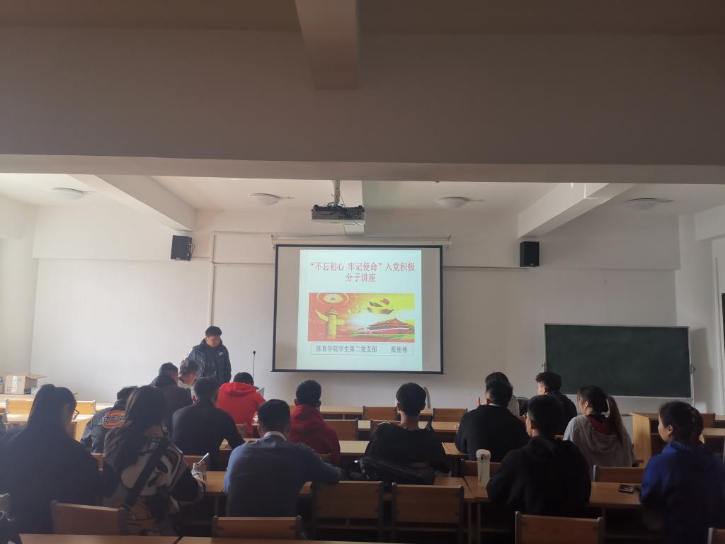 19日上午,入党培训班开班仪式在体育馆四楼多媒体教室举办,程亮老师对发展党员程序进行了介绍;下午,张彬彬老师做了“不忘初心,牢记使命”专题讲座。