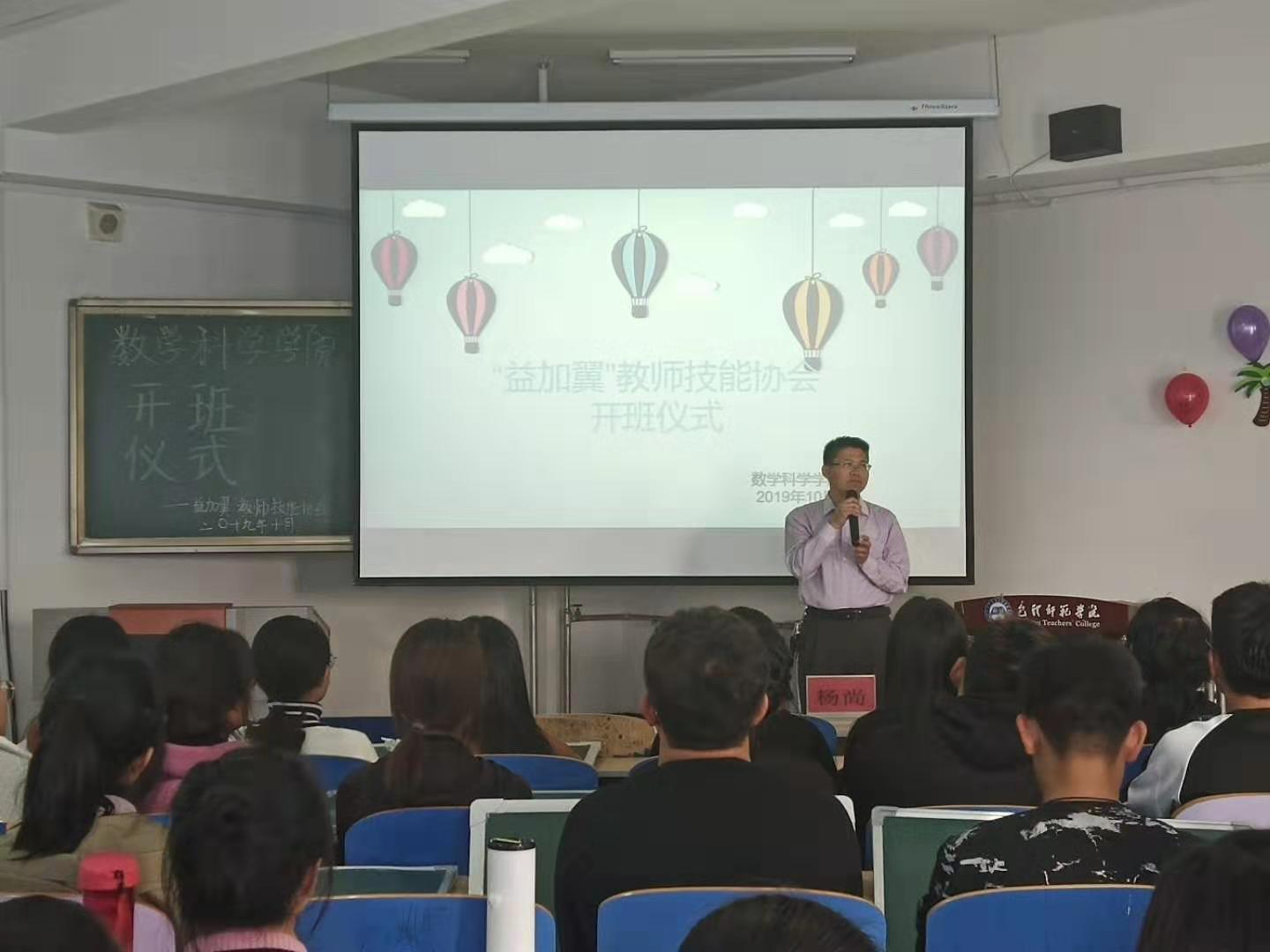 10月17日,数学科学学院“益加翼”教师技能协会举办开班仪式。此次活动的主题是“培育新生教师技能,创建更好的益加翼社团”,学院领导及新加入社团的19级学生参加仪式。