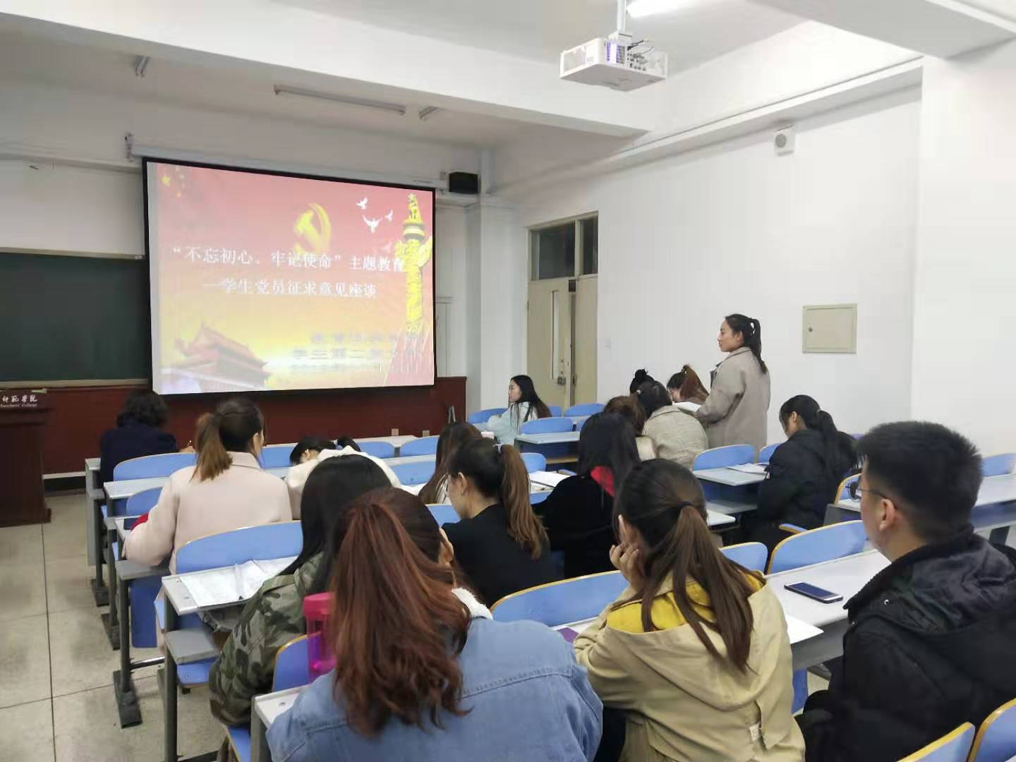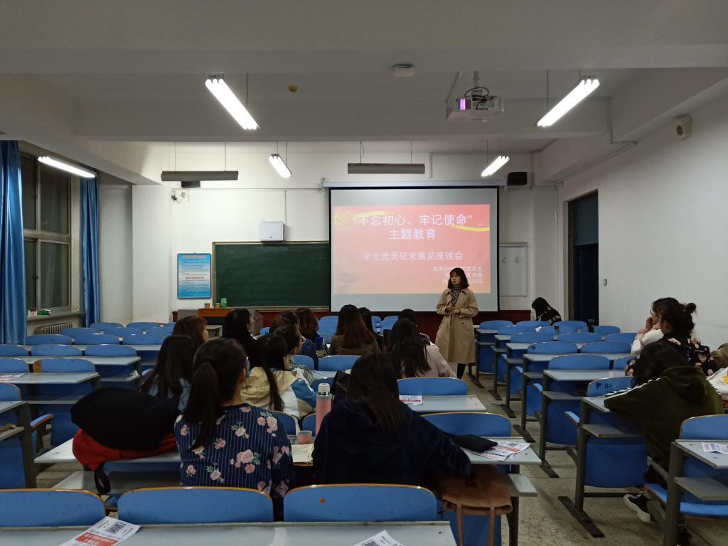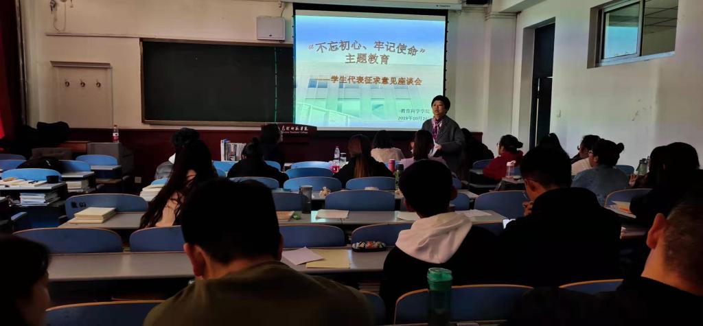 为深入推进“不忘初心、牢记使命”主题教育,同时确保主题教育取得实效,更好的检视问题,整改落实,推动学院高质量发展和下一步开好党支部组织生活会奠定良好基础,教育科学学院党总支指导学生党支部分别召开了学生代表和党员学生征求意见座谈会,学生代表座谈会于10月24日下午在博东302召开,学生第一支部党员座谈会于10月24日下午在博东206召开,学生第二支部于10月25日下午在博东306召开。