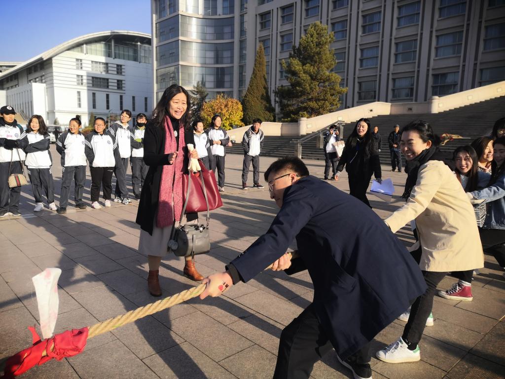 为庆祝中华人民共和国成立70周年,深入推进“不忘初心,牢记使命”主题教育,同时也为迎接教育科学学院2019级全体新生,丰富学院院师生业余文体生活,培养学生团队合作意识,10月26日,教育科学学院在博学楼南门及操场举办了“凝心聚力”趣味运动会暨迎新生入学教育活动。教育科学学院党总支书记张岫峰、院长郝红英、副书记副院长袁秀利、学工办主任方丽慧、19级班主任张思秦和郭佳、辅导员王璐然、贾煦添、梅雅娟、何美娜以及2019级全体新生参与此次活动。