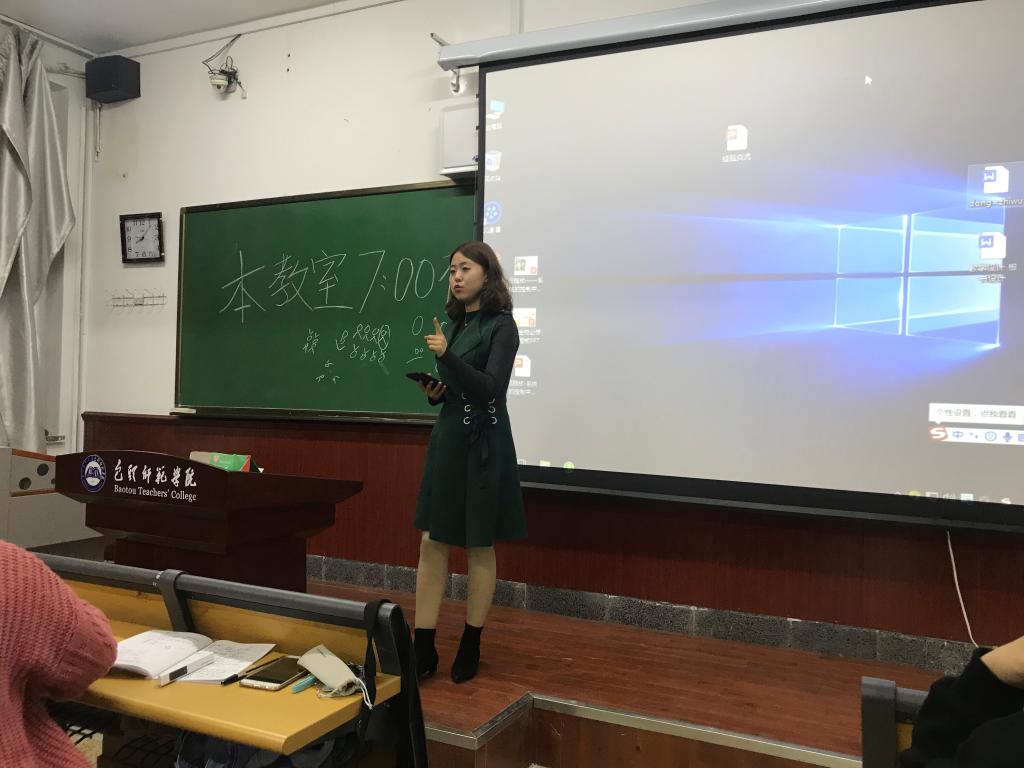 王宁同学分享了教学设计和板书设计等内容,强调了教学设计和板书设计的重要性;刘佳同学分享了教姿教态和如何与学生互动的经验,使同学们更加了解了如何做一名优秀教师,更加重视在教学过程中的言行举止;安烨同学分享了说课和PPT的制作的经验,为同学们全方面讲解了教学事宜。在最后的提问环节,同学们提出自己在讲课方面的疑惑,三位同学一一解答,精彩的讲述让同学们受益匪浅。