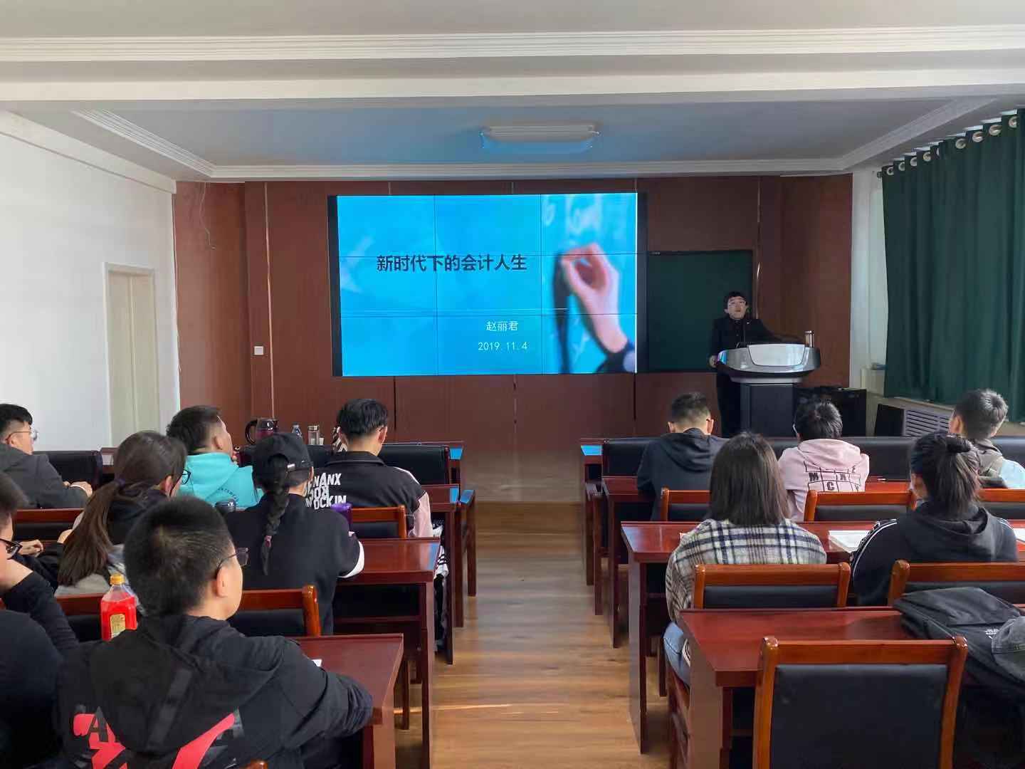 11月4日下午,包头市财政局财政科学研究所所长赵丽君讲师在新逸夫楼622教室作了以“新时代下的会计人生”为主题的讲座,经济与管理学院19级会计班全体新生参加。