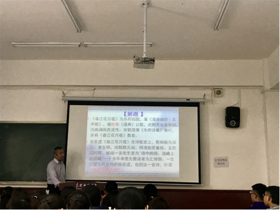 11月1日上午第三节,刘晓堂老师为大三历史专业学生讲授“中国传统文化概论”第三节《张若虚与唐诗兴象》,他幽默风趣的语言、扎实的专业知识使得课堂气氛生动活泼,尤其是解读诗歌时更是引经据典,妙语连珠,使学生对我国古代诗歌艺术有了初步的了解,激发了学生学习中国古代文化的兴趣。