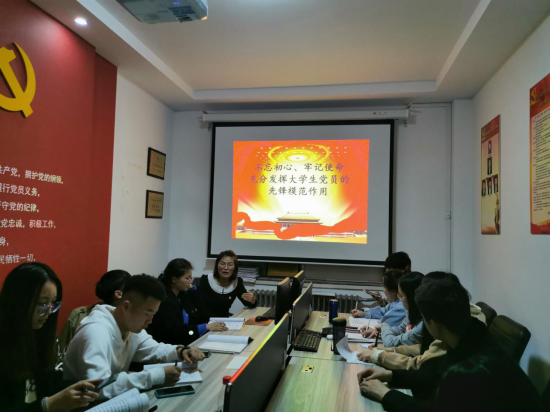 11月7日晚,经济与管理学院学生第二党支部在党员工作站开展“不忘初心,牢记使命”主题教育党课,主题为“充分发挥大学生党员的先锋模范作用”,学院第二党支部书记陈丽芳主讲。