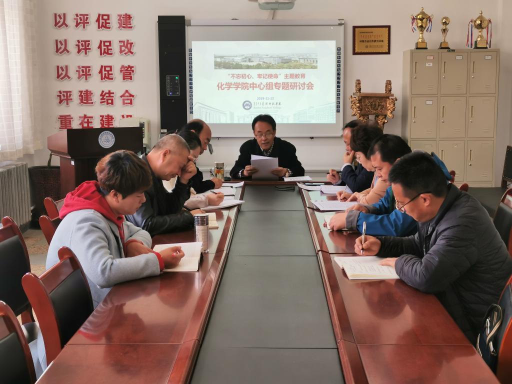 11月12日上午,根据学校“不忘初心,牢记使命”主题教育的工作安排,化学学院中心组以“找差距、抓落实、干事创业敢担当,全力推动学院高质量发展”为主题召开了第四次中心组专题研讨会。学校第二巡回组成员李建军老师到会指导。化学学院领导班子成员、党总支委员和化学、应用化学系主任及教务、学工、实验中心主任等中心组成员参会。会议由化学学院党总支书记史继敏主持。