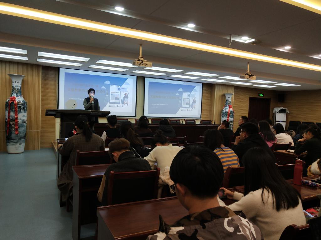 张宁讲师从文献检索、论文阅读和论文写作三个方面进行了细致认真的讲解。首先,他介绍了文献检索、知识元检索、引文检索、高级检索和出版物检索的操作方法。之后,他又讲解了分组浏览、知识节点、相似文献、计量可视化分析的基本概念及编辑工具的运用。特别是在论文写作讲解中,他通过具体范例,教会大家利用CNKI数据库如何检索文献、分析文献、选择文献、利用文献,并对论文题目的拟定、关键词的提取、摘要的撰写、规范的参考文献格式等进行具体的指导、演示、讲解。