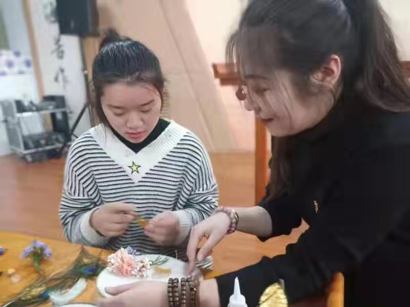 为庆祝中华人民共和国成立70周年,加强爱国主义教育,弘扬爱国主义精神,激发学生的爱国热情,深入开展“不忘初心、牢记使命”主题教育,11月17日下午,美术学院学生党支部组织15名学生党员在青山区合志家园学院社区开展了文化传承活动,即为社区居民们讲解了宫扇的文化与制作。
