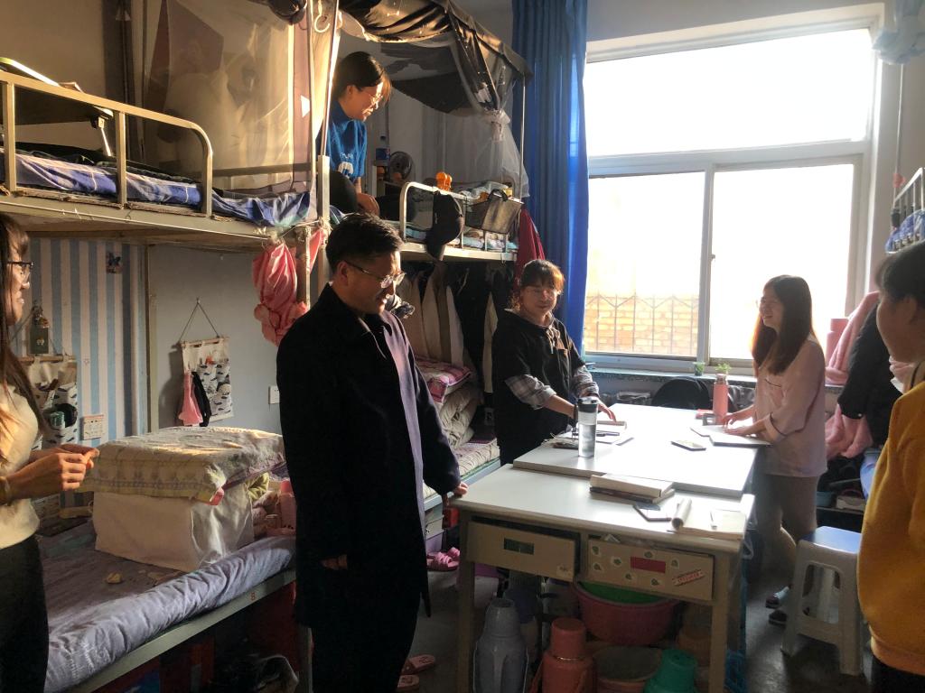 11月22日下午,历史文化学院党支部副书记、副院长吴冰,学工办主任孟令宏,学生辅导员张英、李健对学院9号楼、12号楼的16级至19级学生宿舍进行了突击检查。在检查过程中,老师们重点对宿舍卫生、用电安全以及防火、防盗等诸多方面进行了检查,对发现的问题现场提出并予以整改。(历史文化学院)