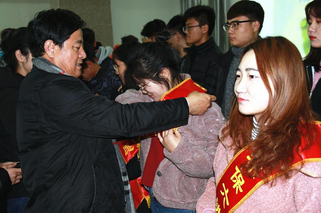 化学学院党总支书记史继敏表示,共筑北疆绿色生态安全屏障是每个人应尽的义务,全体师生应秉承环境为先的发展观,做无污染的化学人。在随后的授旗仪式中,韩玉超会长和魏兵院长为参加讲座的志愿者们颁发了绶带及证书,并由韩玉超会长向化学学院授予“六进生态环境保护公益活动组织包头支队”旗帜。