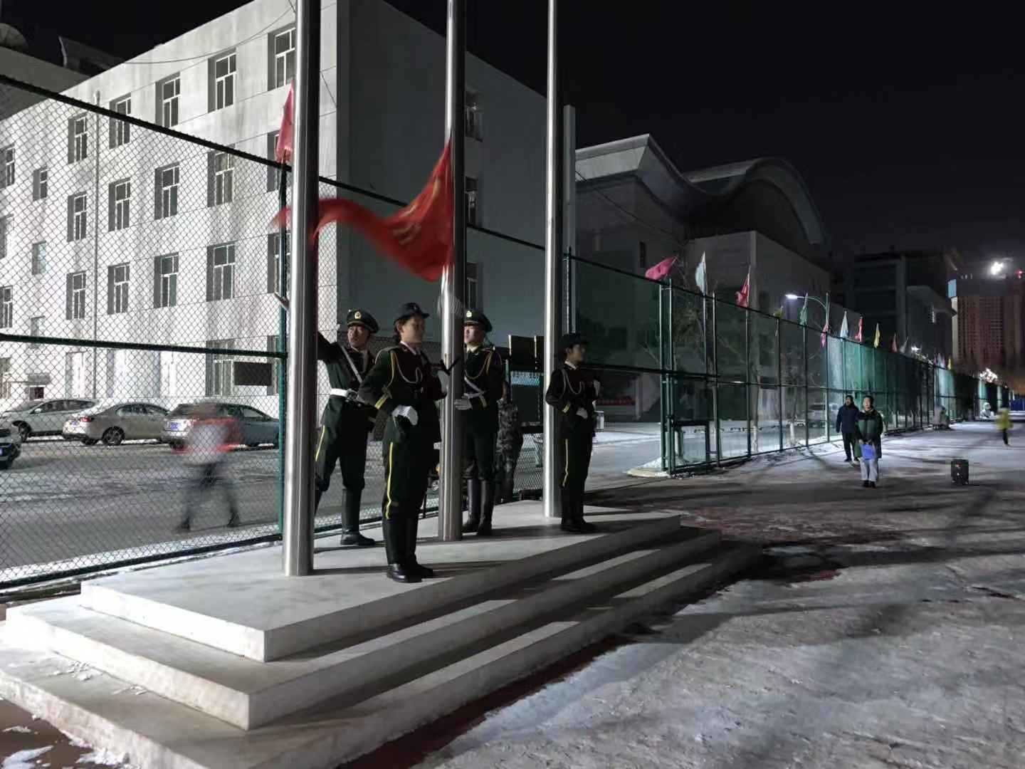 12月4日早晨6点50分,国旗班组织升国旗仪式,政治与法律学院学生进行了国旗下的演讲和宪法晨读;