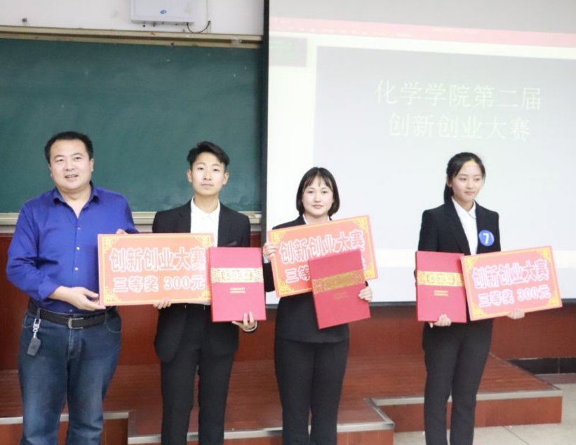 为贯彻落实全国教育大会精神,加快实施创新驱动发展战略,适应和引领经济发展新常态,推进“大众创业,万众创新”,同时也为了拓展化学学院学生的知识面,提高同学们的创业、择业、就业能力,化学学院于12月11日在博学楼600举办了“化学学院第二届‘创易人生’创新创业大赛”。化学学院党总支书记史继敏师、副书记冯丽、办公室主任郭玉玮、学工办辅导员张旭、学生会副主席蒲瑞龙担任了本次大赛的评委。
