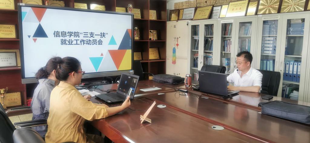 为了贯彻落实我校毕业生就业工作会议精神,使毕业生获得更多的就业信息和应聘渠道,6月5日,信息科学与技术学院在会议室通过钉钉平台召开了“三支一扶”就业工作动员会议。学院副书记副院长郭宏升、辅导员姜嘉丽、2020届全体未就业学生和有意向了解有关政策的就业学生共119人参加了会议。会议由学工办主任丁坤主持。