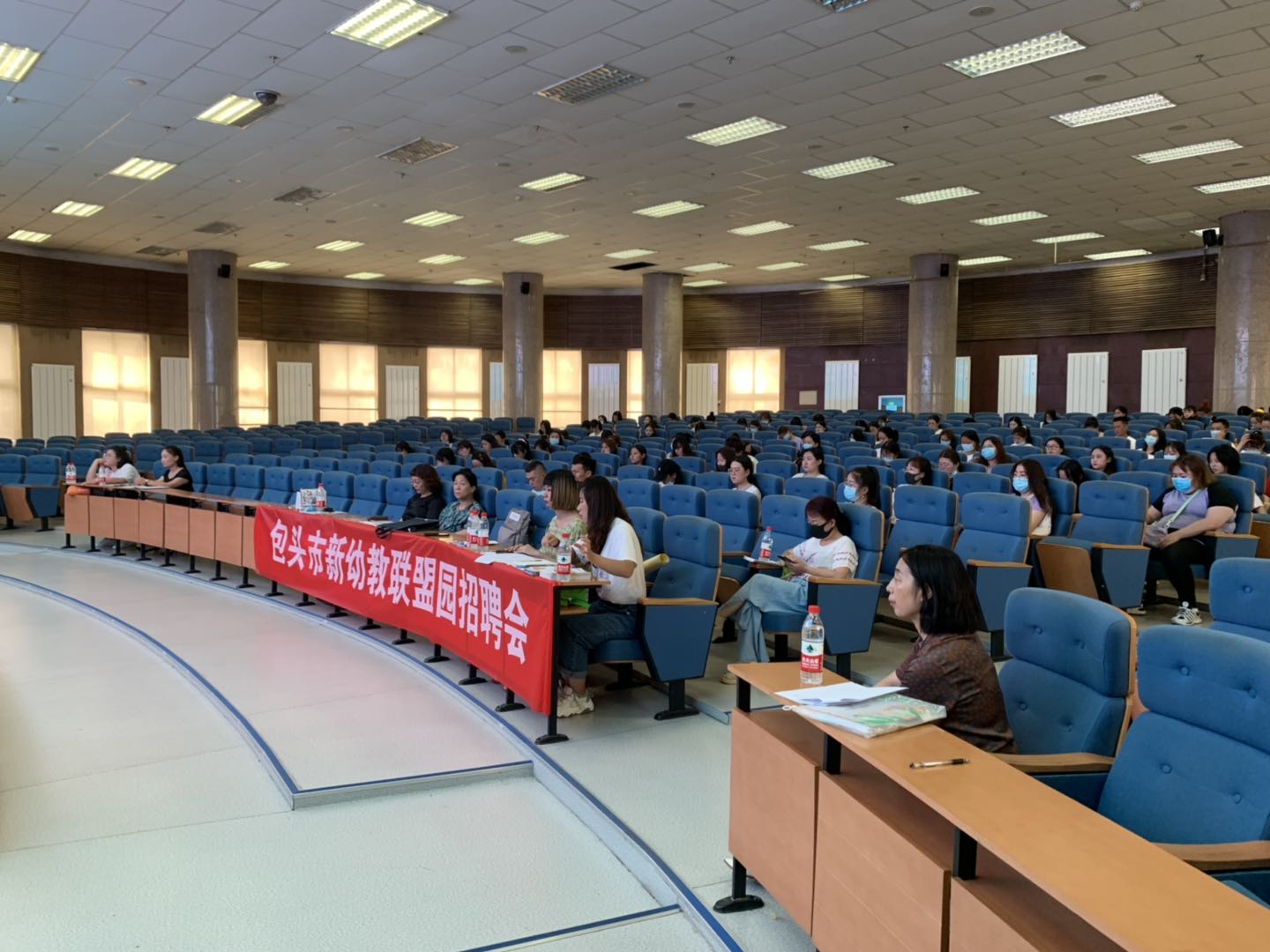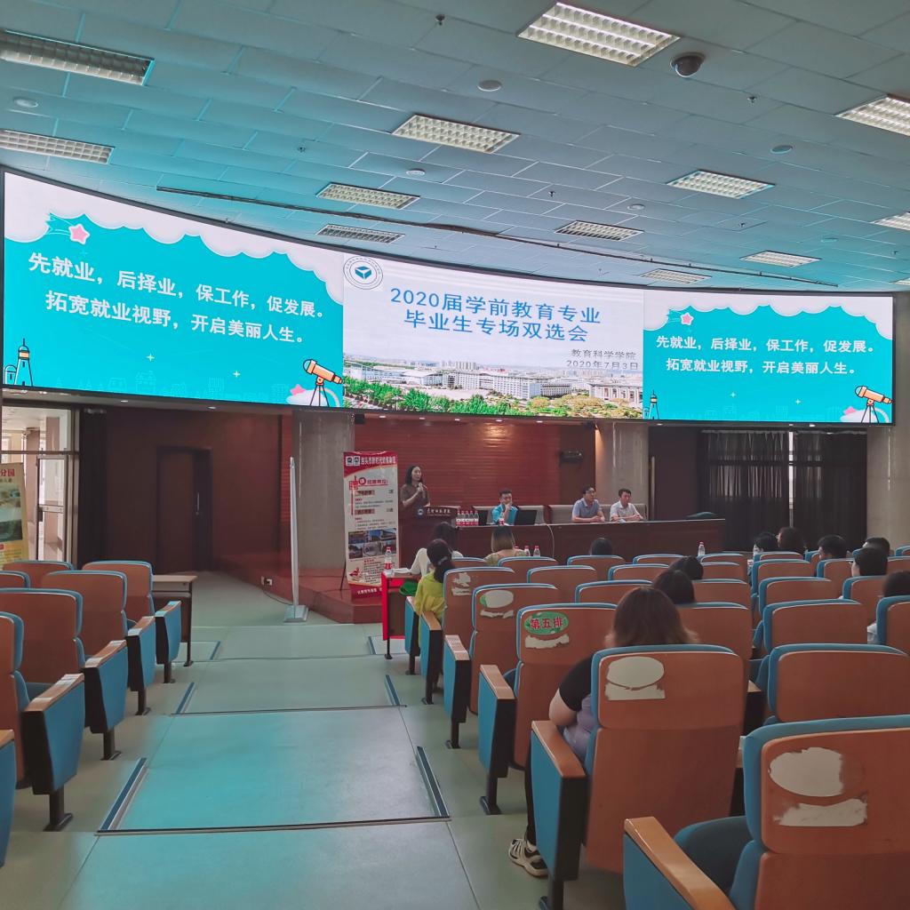 为进一步推进学院毕业生就业工作,大力构建毕业生与用人单位的交流平台,积极为用人单位输送应用型人才,提高就业率,7月3日下午,教育科学学院在博学楼报告厅举办了2020届学前教育专业毕业生专场双选会。学院领导对此次招聘会高度关心和支持,党总支书记张岫峰亲临会场指挥并与用人单位和毕业生交流。教育系主任董先芝、高伟老师和毕业班班主任于海臣、张烨琳老师都亲自到场组织毕业生有序应聘。此次招聘会组织了包头市新幼教联盟盟属8个幼儿园和包头市新生世纪幼儿园的11位人员来校参加招聘,教育科学学院学前教育专业2020届应届毕业生近80名同学参加了此次校园招聘会。