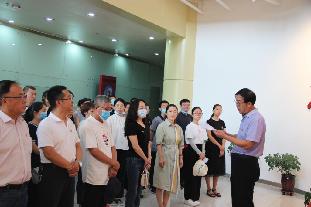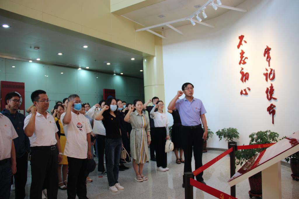 参观活动结束后,三个学院全体党员教师于展厅中心的党旗下集合进行重温入党誓词集体宣誓仪式,教育科学学院党总支书记张岫峰代表三个党总支讲话。张岫峰同志指出:这次党日活动,既是庆祝党的生日的系列活动的一项重要内容,也是贯彻落实“不忘初心、牢记使命”主题教育常态化要求、加强党的建设、推动贯彻落实党的组织路线的一次重要活动。习近平总书记在主持中央政治局第二十一次集体学习,就“深入学习领会和贯彻落实新时代党的组织路线”作了重要讲话,强调组织建设是党的建设的重要基础。党的组织路线是为党的政治路线服务的。我们党要长期执政、永葆活力,团结带领全国各族人民沿着中国特色社会主义道路实现中华民族伟大复兴,最重要的是把党建设得更加坚强有力。总书记的讲话为进一步推动全党深化认识并贯彻落实新时代党的组织路线、深入推进党的建设新的伟大工程提供了根本遵循,为增强党的创造力、凝聚力、战斗力提供了重要保证。他号召并要求各党支部要把握重大要求,切实把新时代党的建设总要求和新时代党的组织路线贯彻好、落实好;要加强理论武装,推动学习习近平新时代中国特色社会主义思想常态化、长效化;要强化政治功能,认真贯彻执行基层组织工作条例,把基层党组织建设成为讲政治、守纪律、敢担当、有作为的战斗堡垒;要加强党员、干部队伍建设,着力锤炼忠诚干净担当的政治品格,不断提升干事创业的能力水平。