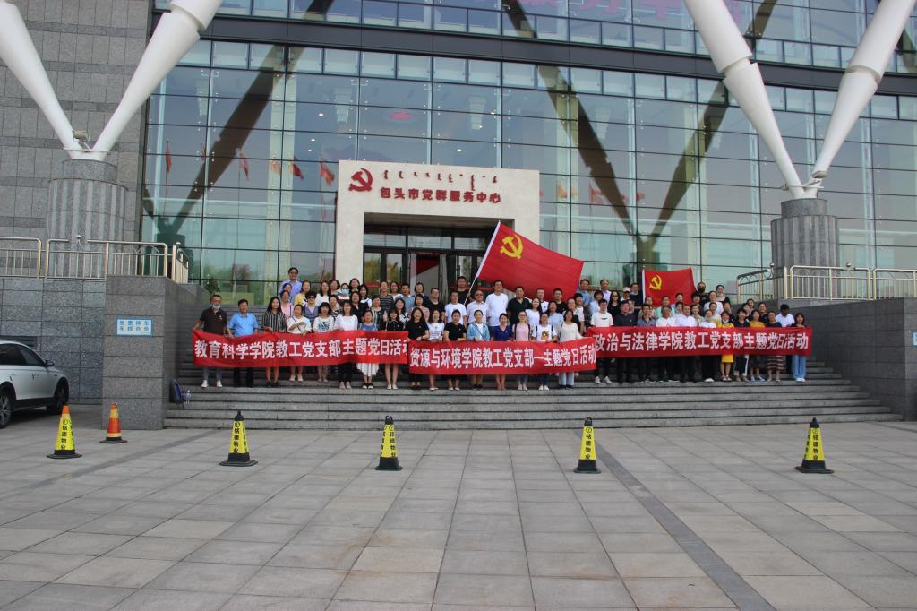 为进一步提高教工党组织凝聚力,增强教师党员的政治素养、党性修养,开阔党建工作新思路。7月9日下午,政治与法律学院、教育科学学院、资源与环境学院3个党总支的教工党支部,联合开展了庆祝中国共产党成立99周年主题党日活动-----组织三个学院全体党员教师前往包头市党群服务中心进行参观学习。