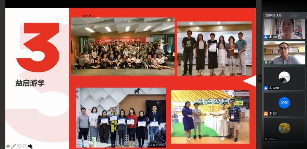 鄂尔多斯社会组织服务中心的王宇龙主任用图文详实的PPT向同学们展示机构的基本概况、承担项目以及机构的众多优秀案例和成员志愿公益的精神面貌,最后就实习生相关待遇做介绍;深圳阳光家庭综合服务中心的执行总干事梁兴利主要了阐述深圳阳光家庭目前承担的项目,包括政府购买党群服务中心项目、家庭服务中心项目、政府职能转移行政窗口公共服务项目、社区综合管理和信息化服务项目、园区女工和流动儿童以及家庭服务等中心的相关项目,为同学们展示了一个专业化、多方位发展的社会组织;包头市青山区弘仁社会工作服务中心的理事长高峰作为社工系的直系学长,在介绍本机构的基本概况与发展路径的同时,也结合自身多年直接参与社会工作服务的亲身经历,为同学们描绘出包头社会工作发展的蓝图与愿景;来自共青团固阳县委员会的书记吴宇,在介绍固阳县的地理环境、发展成就等相关概况后,结合固阳县脱贫攻坚的有关政策,向同学们阐述当地对社会工作人才的需求,寻求“脱贫攻坚+社会工作”融合发展的反贫困社会工作的具体路径,同时引导同学们树立远大理想,发挥自己的专业优势,为中国特色社会主义事业添砖加瓦;包头市益行社会组织服务中心的云霄飞主任主要介绍了益行社会组织服务中心的地理位置与中心概况,又依次介绍了下属机构红创空间、青创园、市级创新园等相关概况;包头市灯塔社会工作者协会的赵越会长是政法学院社工系的毕业生,他用轻松诙谐的言语,为同学们描绘出灯塔社工在发展历程中所取得的成绩、未来的发展方向以及为社工系的学弟学妹们在实习期间可以得到的发展机会;包头市社区服务联合会的秘书长李翠娥为同学们介绍稀土高新区孵化园对包头市社会组织的孵化发展的重要作用以及机构关于党群服务中心运营的相关事项,并阐述机构对实生的相关培训与发展机会等。