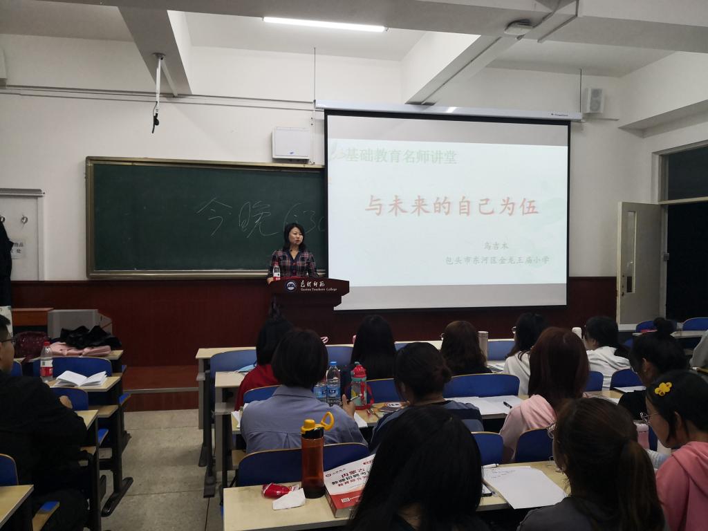 9月11-24日,教育科学学院分别聘请包头市东河区金龙王庙小学副校长乌吉木、北重三中的李程老师、包钢幼教集团第二幼儿园的保健医杜继仙老师来我校讲座。本次讲座主要面向2017级全体学生。