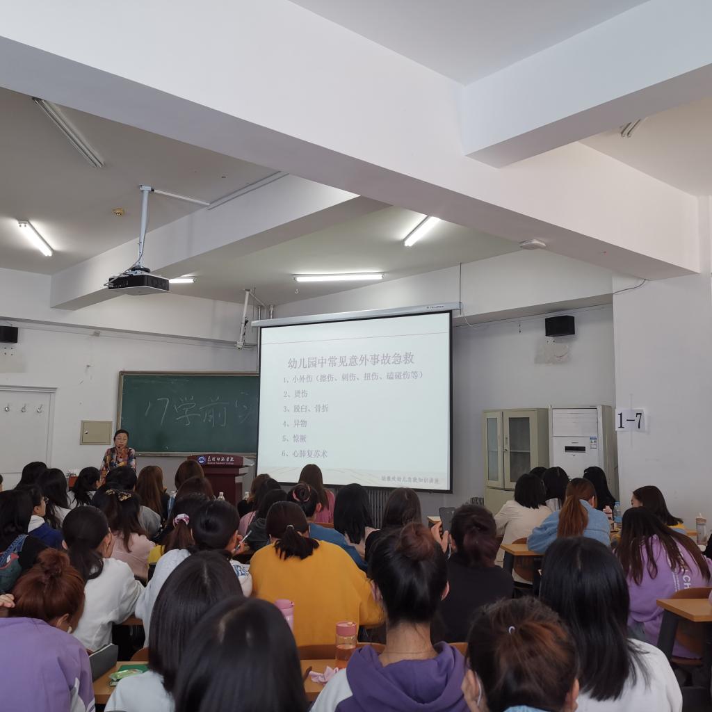 9月24日下午,杜继仙老师面向学前教育专业学生做了“幼儿意外伤害的紧急救助”的主题讲座。杜老师首先介绍了“保教人员在幼儿意外伤害中急救能力的调查研究”的结果,发现幼儿教师普遍缺失幼儿伤害救助知识,幼儿园也不太重视幼儿伤害救助知识类的讲座。 接下来从幼儿园常见的意外事故,如小外伤、烫伤、脱臼、骨折、异物、惊厥、心肺复苏术等,结合生动鲜活的案例深入浅出地讲解了幼儿园常见的意外事故及急救原则和方法。最后,杜老师强调急救最重要的就是:保持冷静!